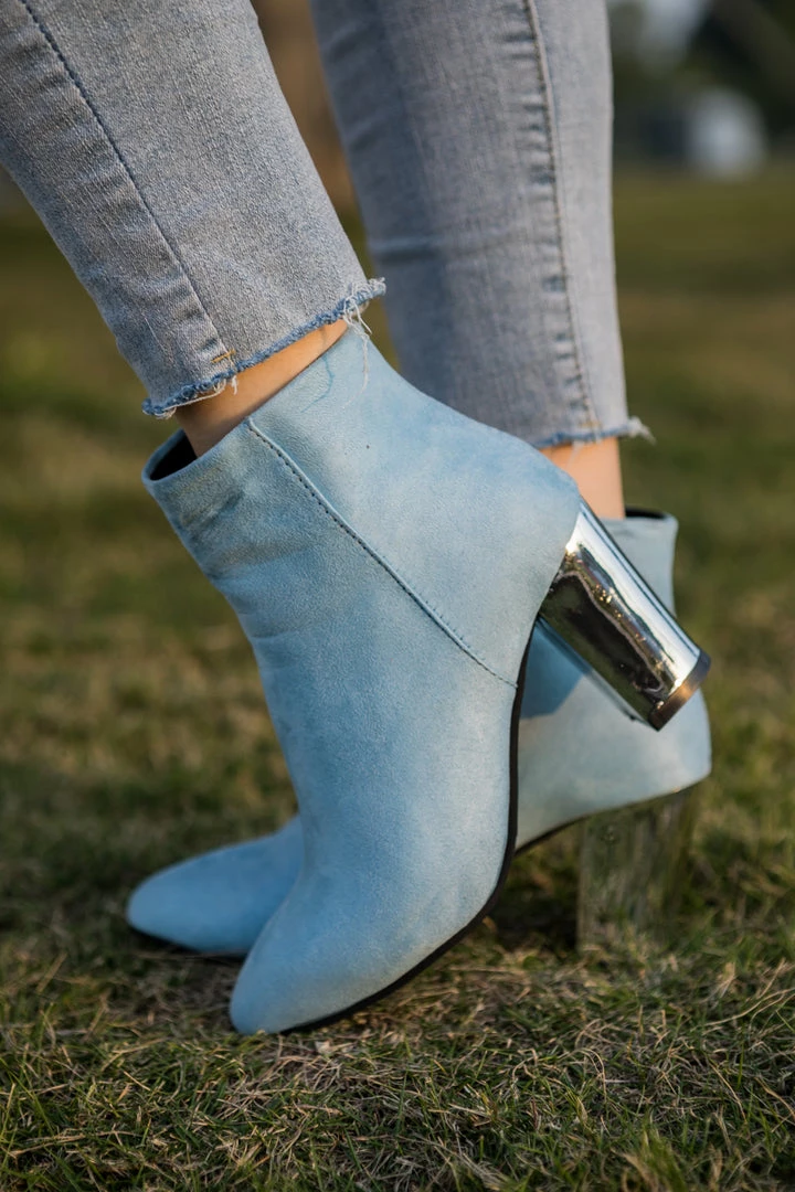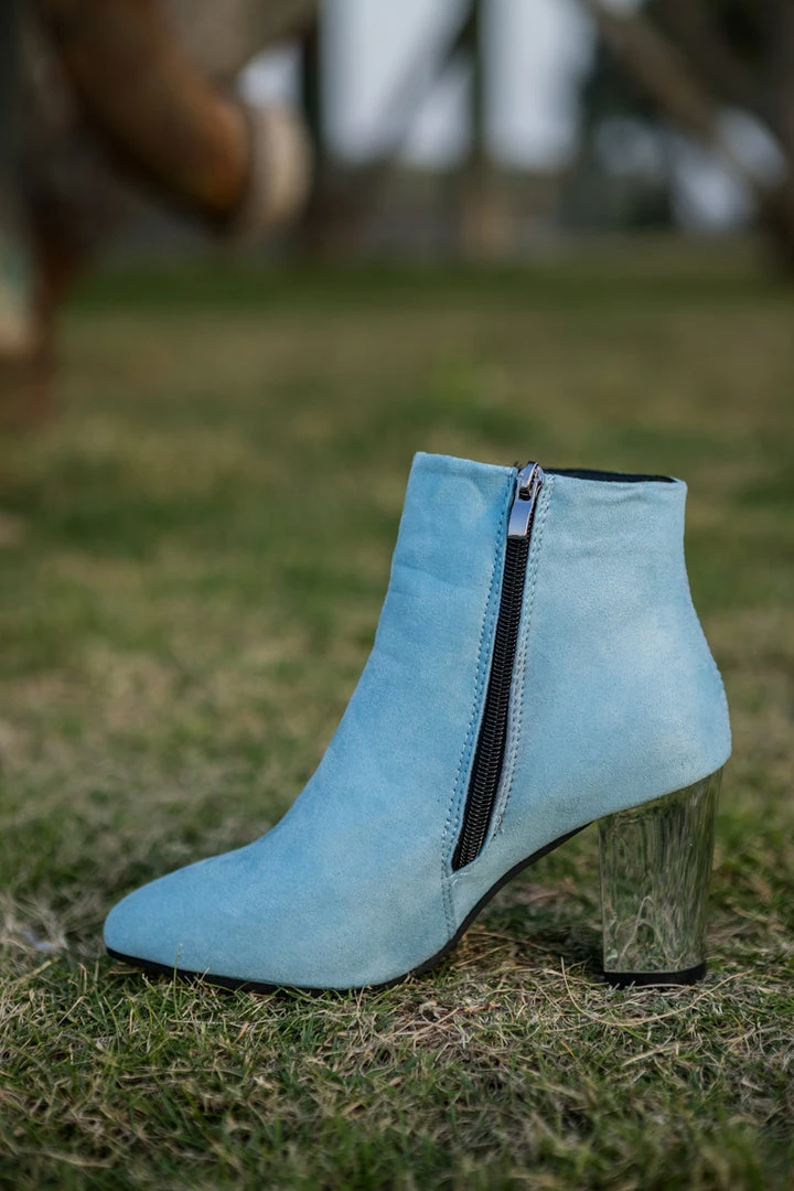 Update your footwear options with these mirror heel low ankle boots that feature the simplest design and block heel. Side-zipper closures offer convenience.