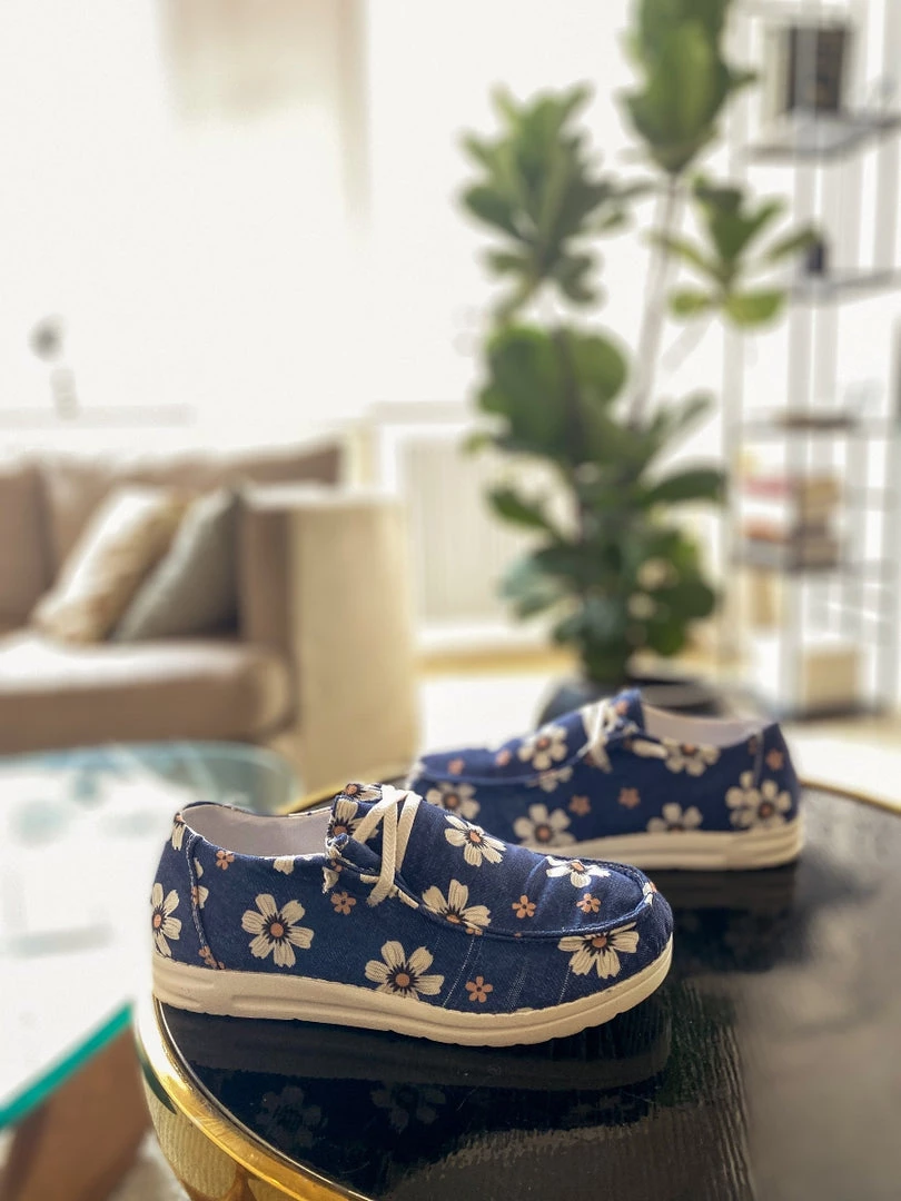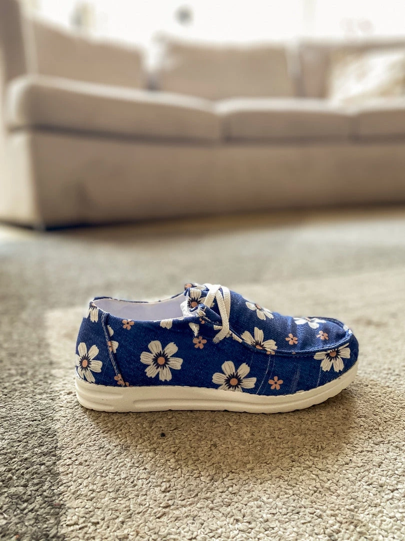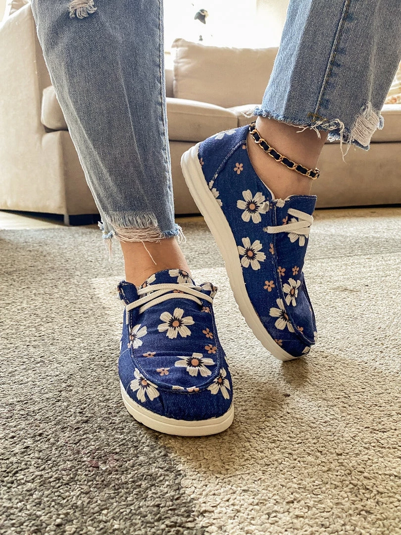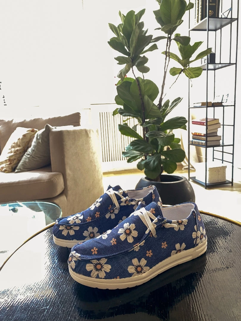 With a canvas-inspired design and slight lace-up detail, this daisy print boat shoe provides chic style to your casual looks.