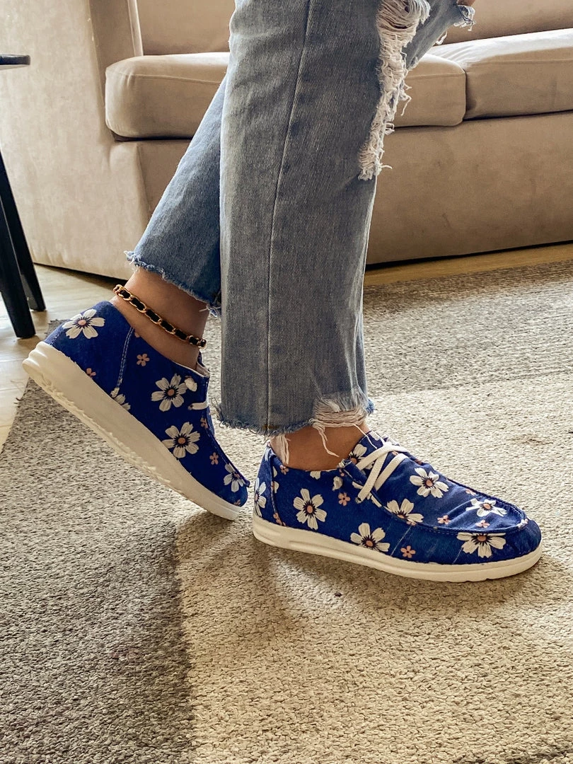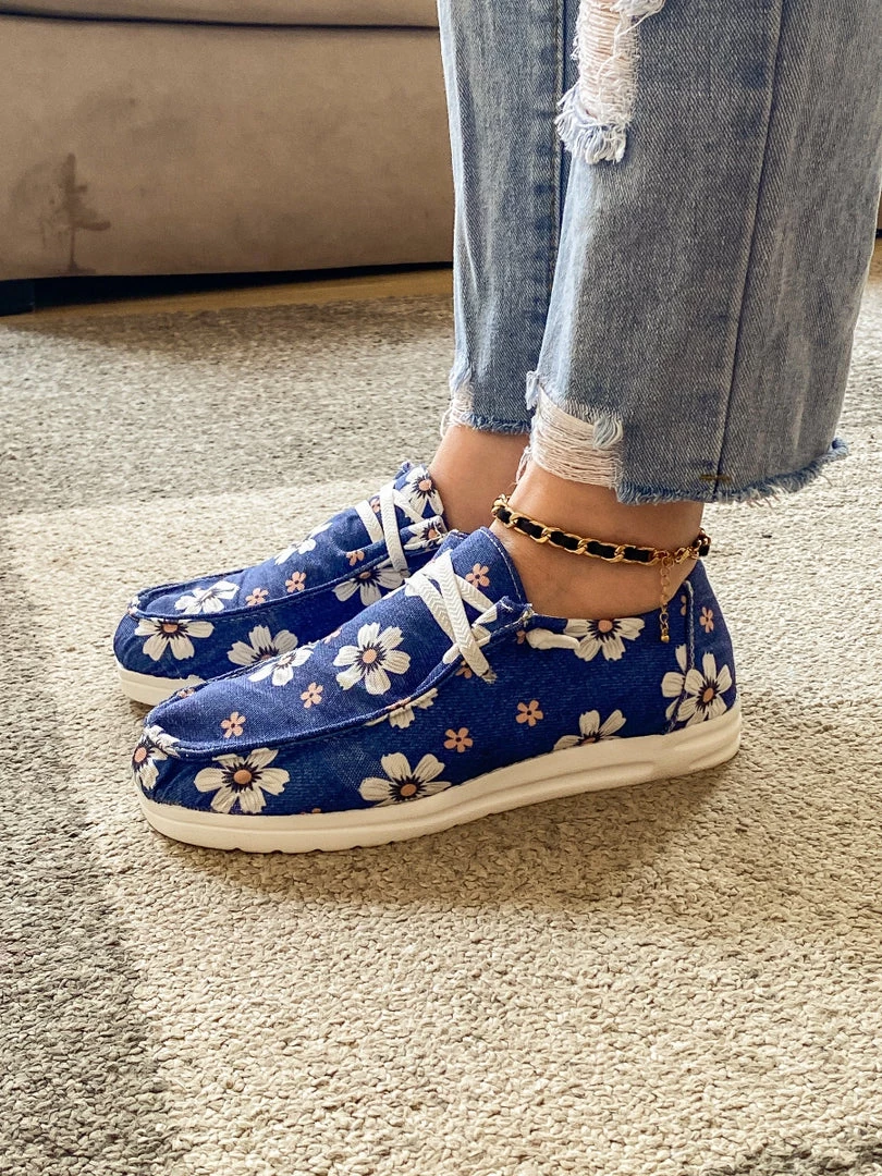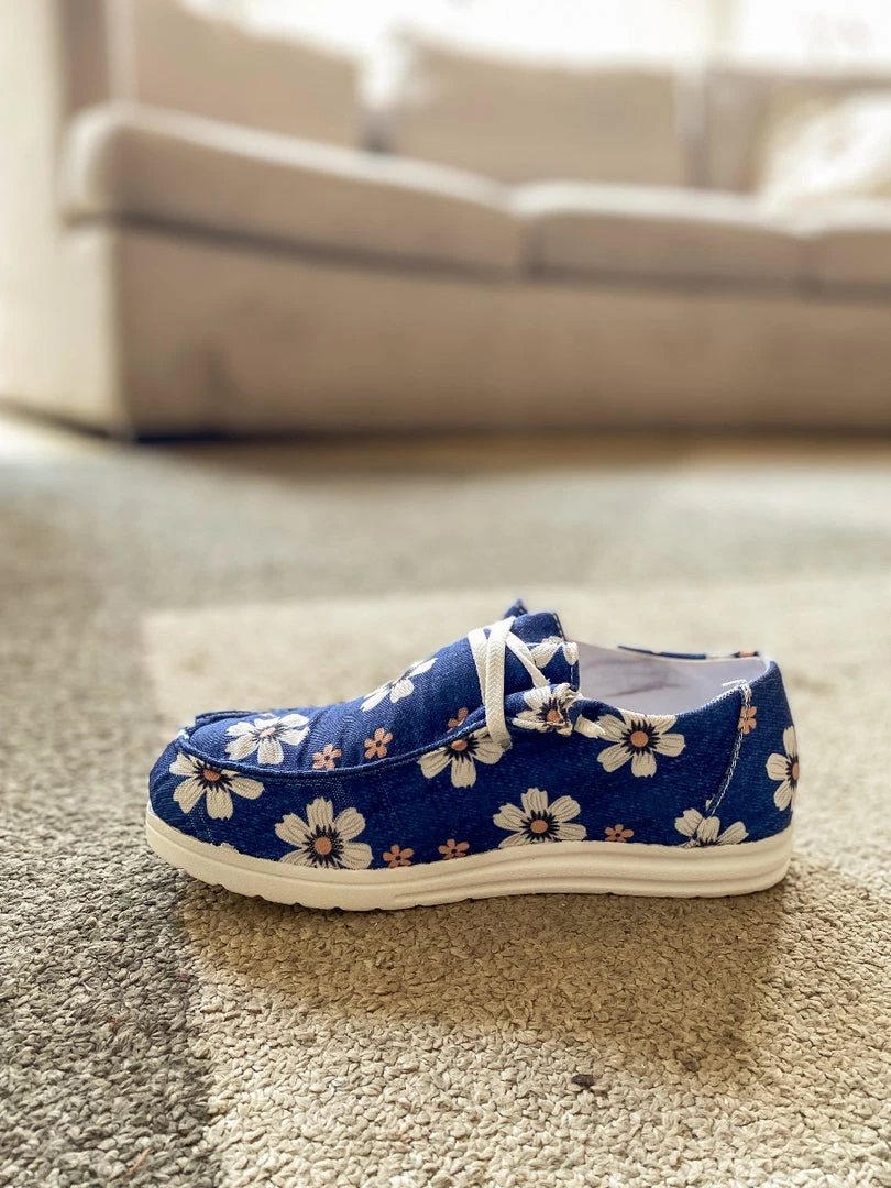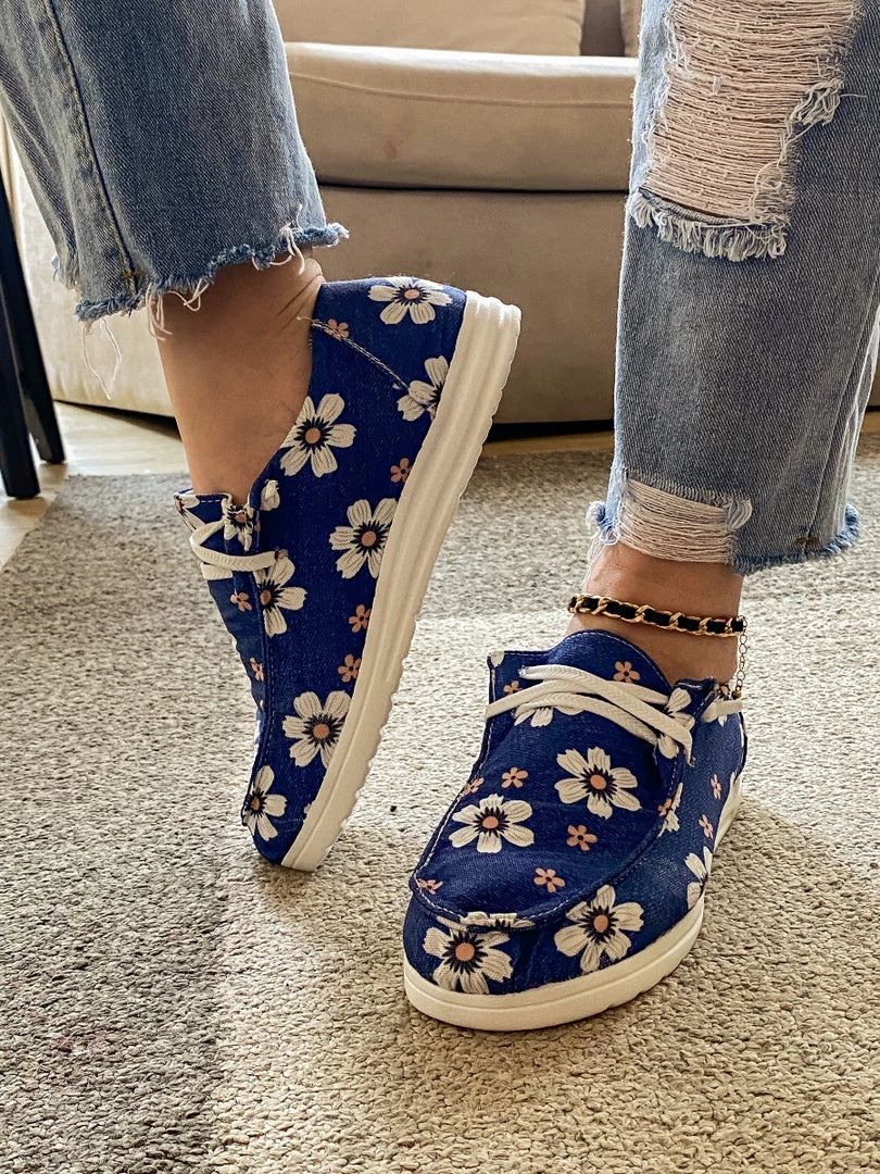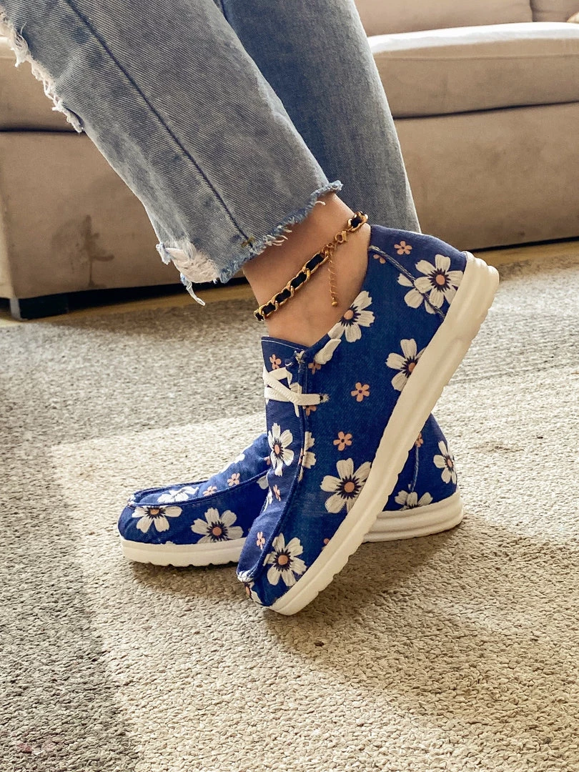 With a canvas-inspired design and slight lace-up detail, this daisy print boat shoe provides chic style to your casual looks.