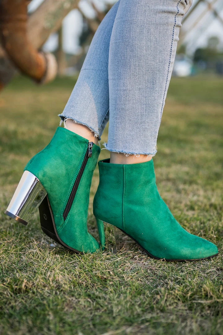 Update your footwear options with these mirror heel low ankle boots that feature the simplest design and block heel. Side-zipper closures offer convenience.