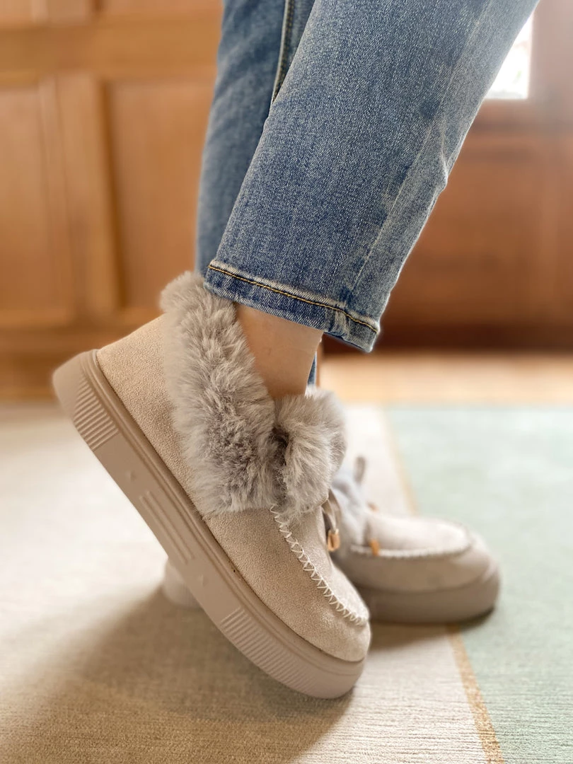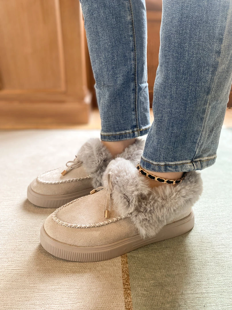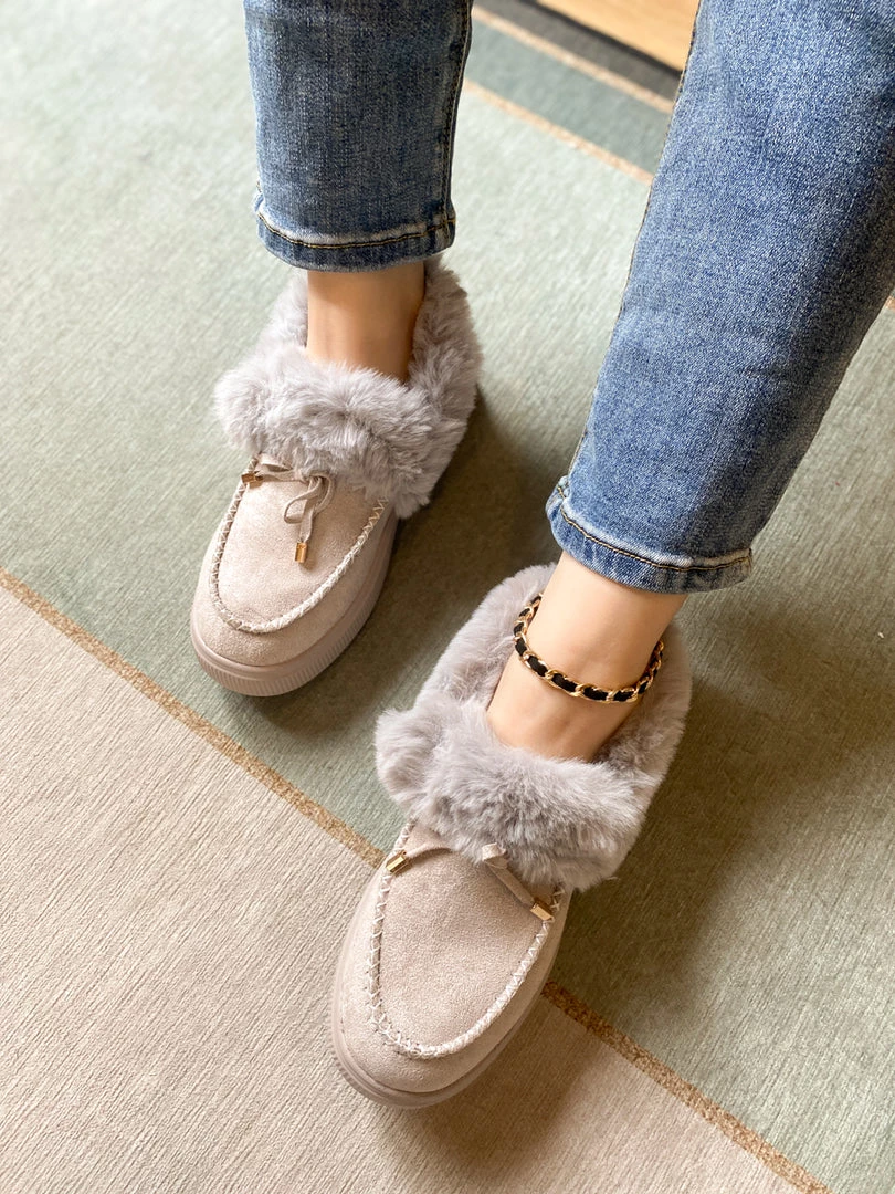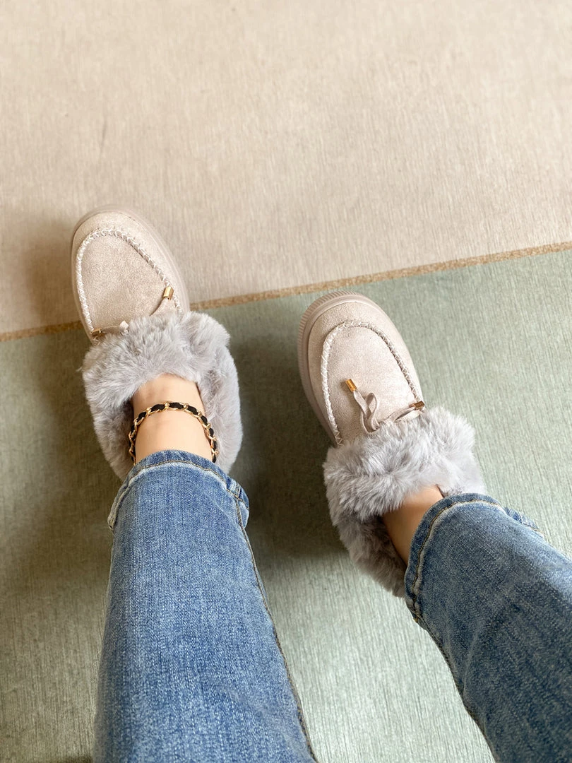 Update your lounge-ready footwear rotation with the style and comfort of this loafer designed with soft suede and cozy faux-fur lining to give you extra warm.
