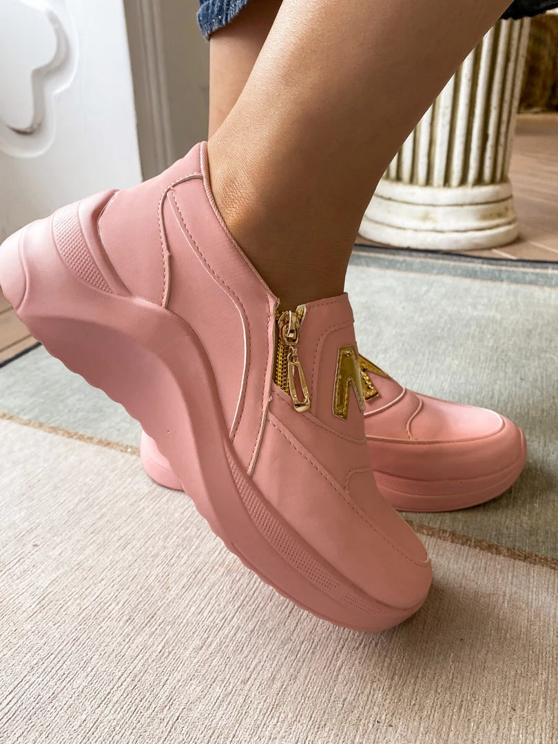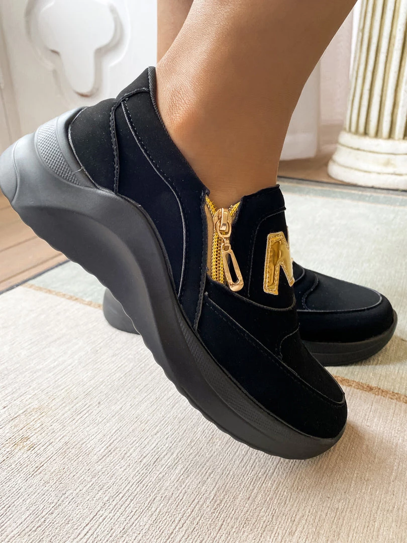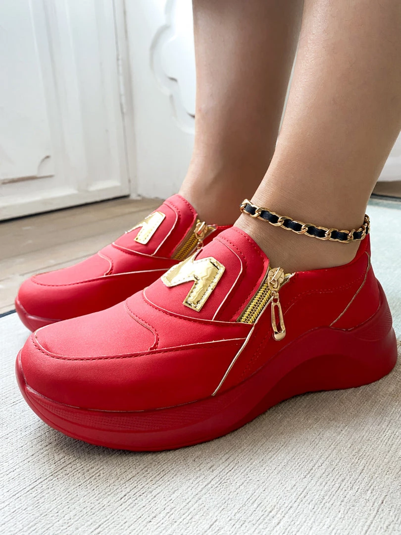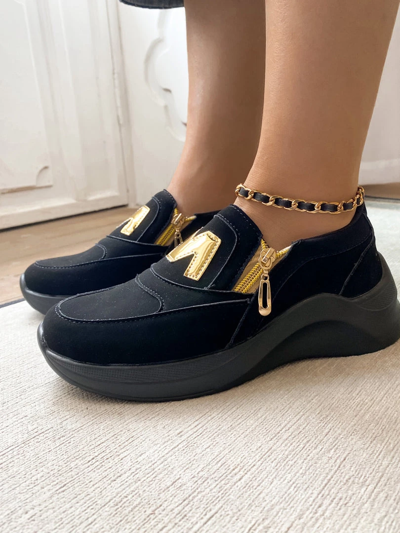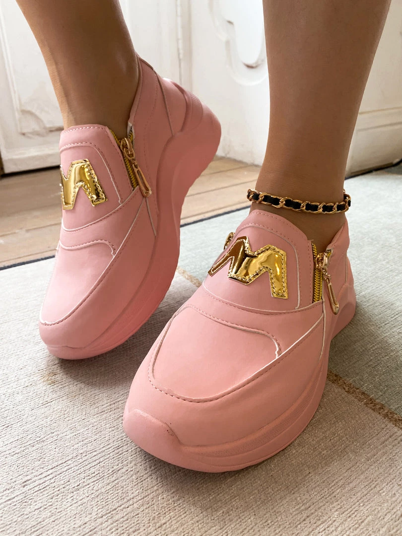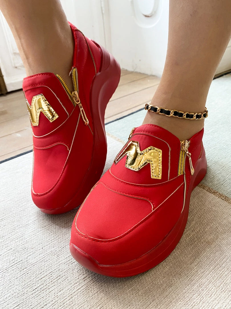 Finish your casual-chic ensemble with this slip-on sneaker boasting a M Logo design with gold tone side zip closure.