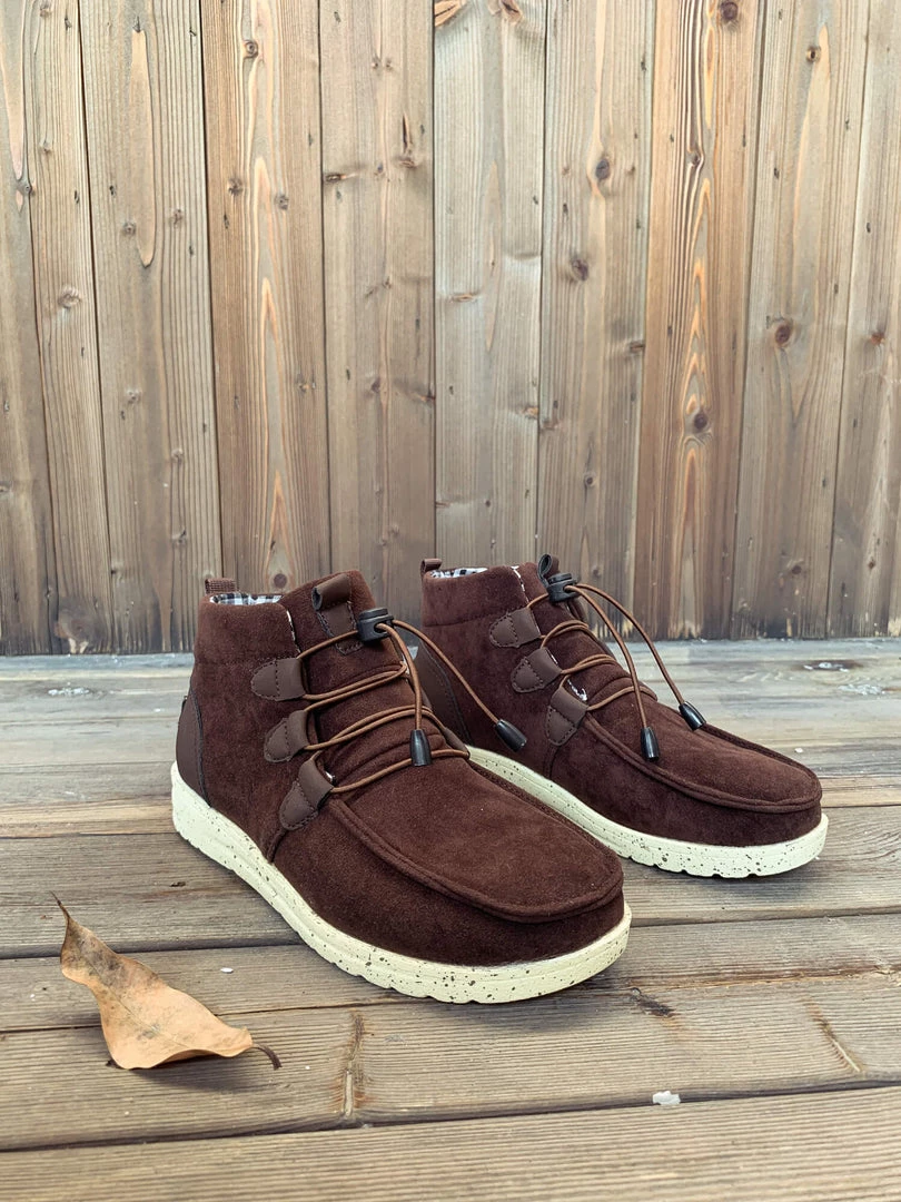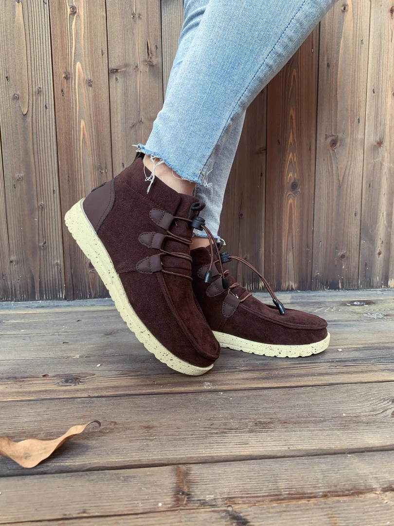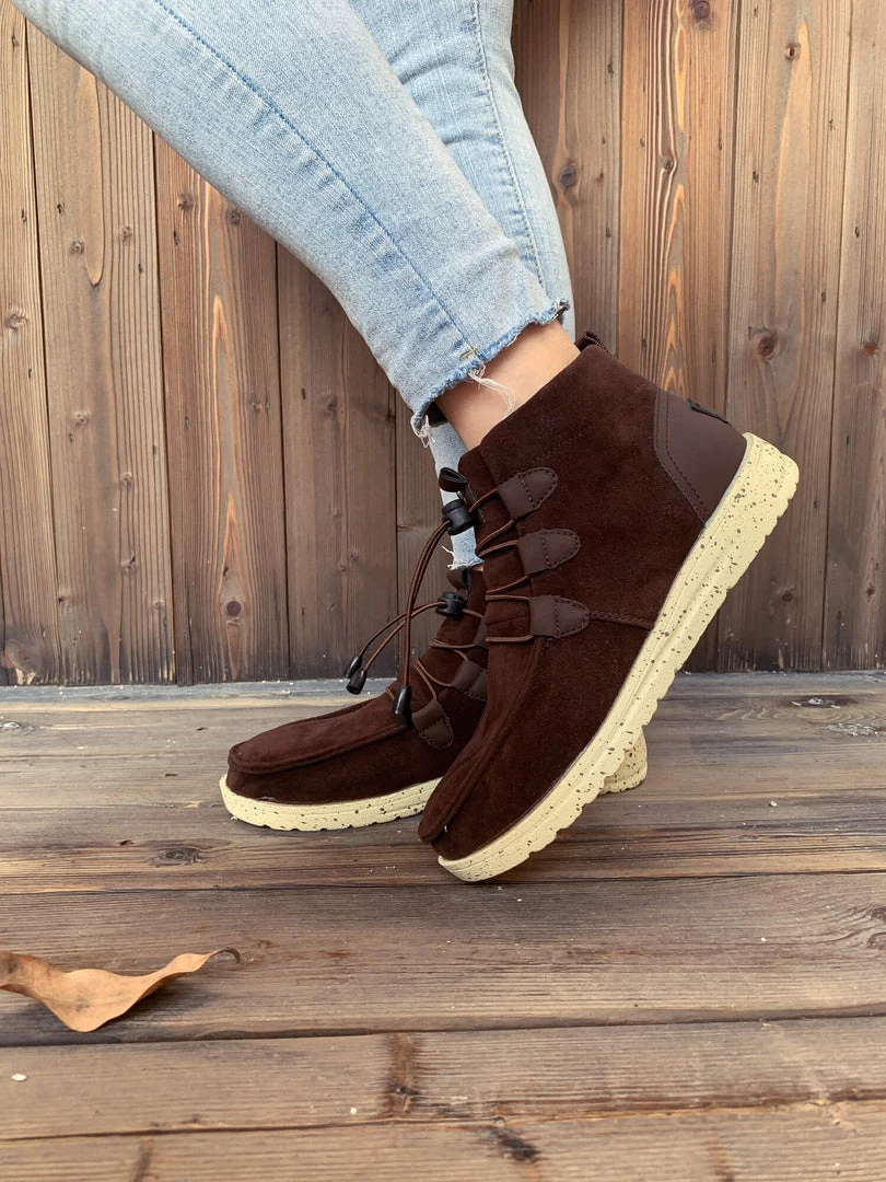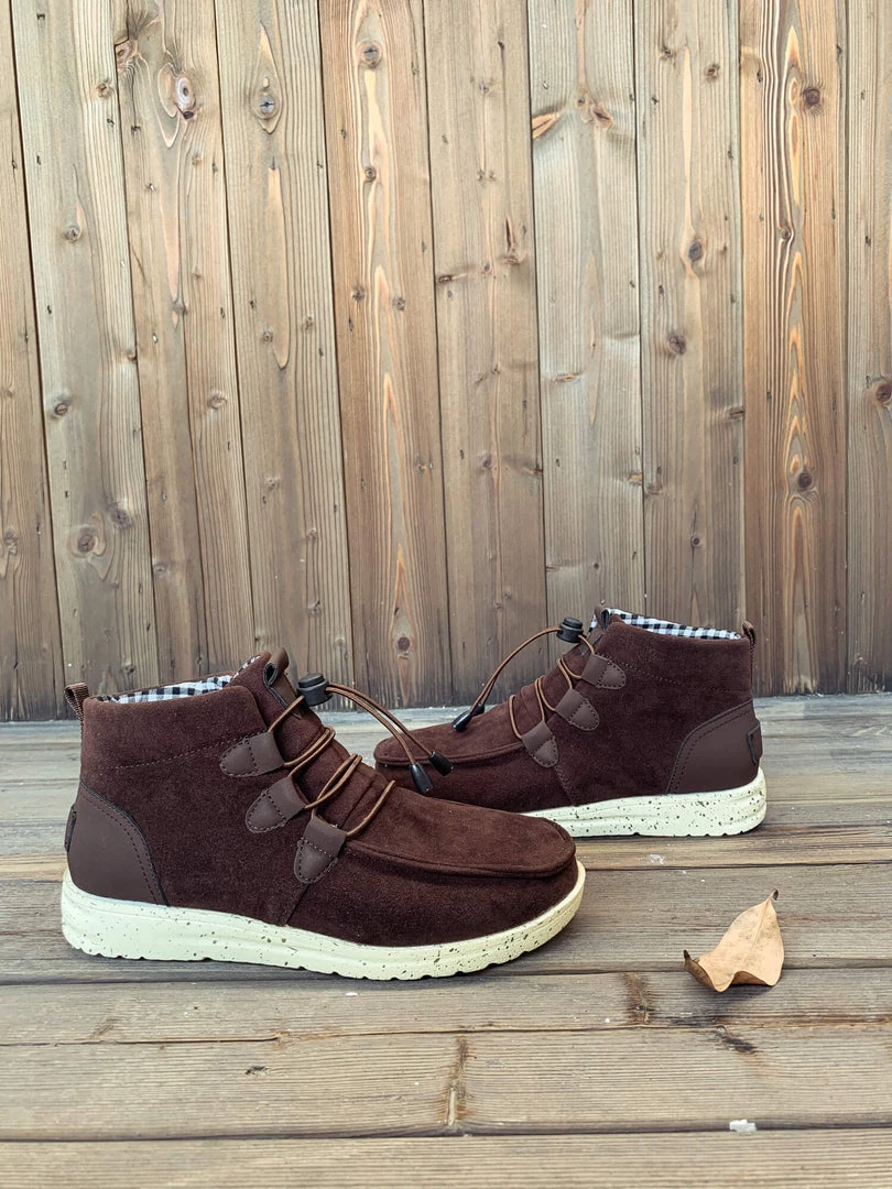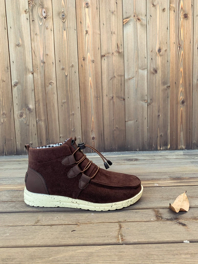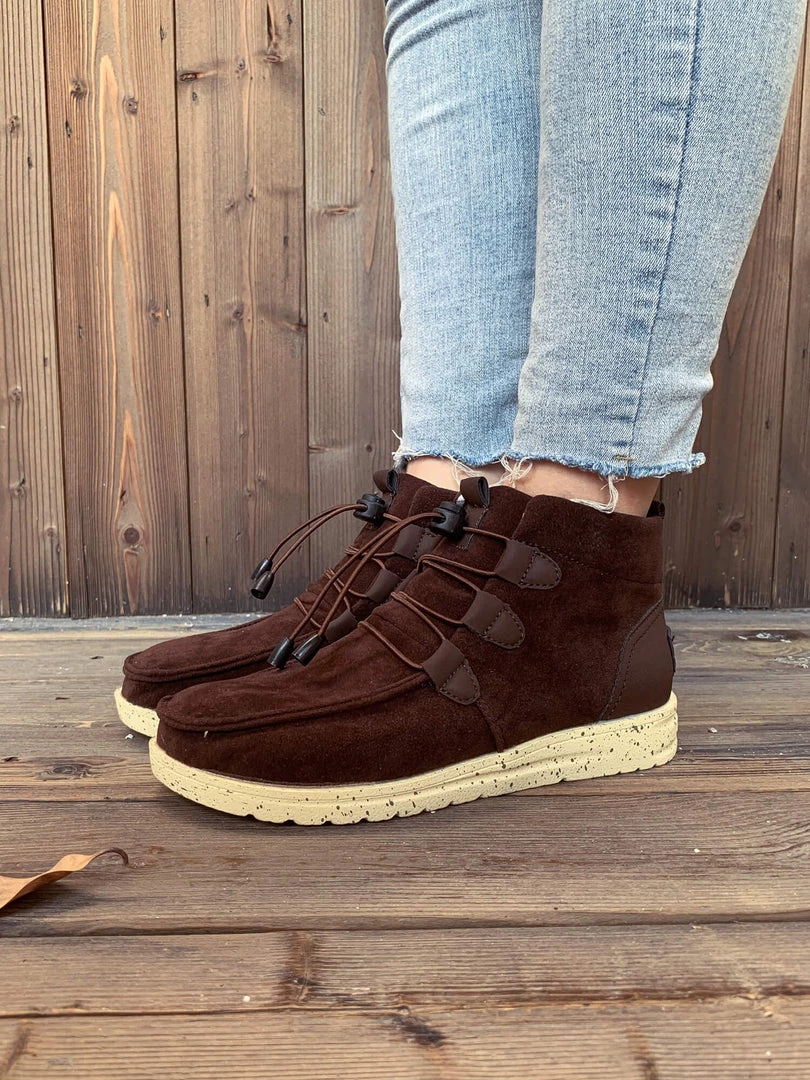 Add a rugged feel to your casual ensembles with this ankle boot that features bungee laces for a convenient fit adjustment.