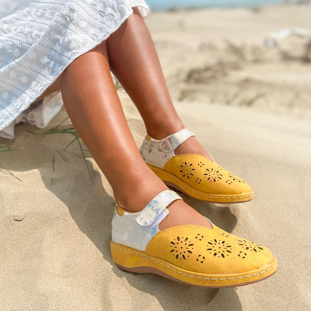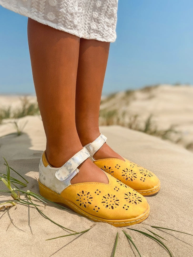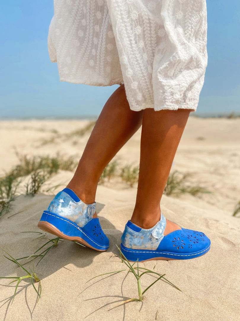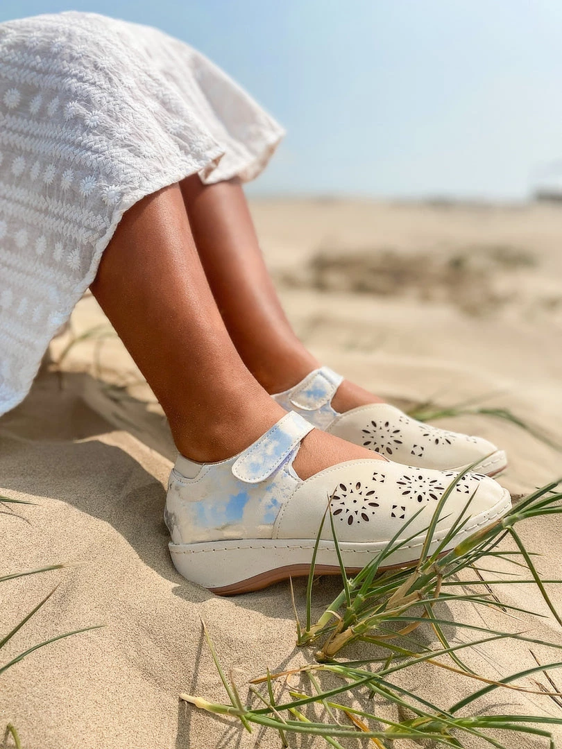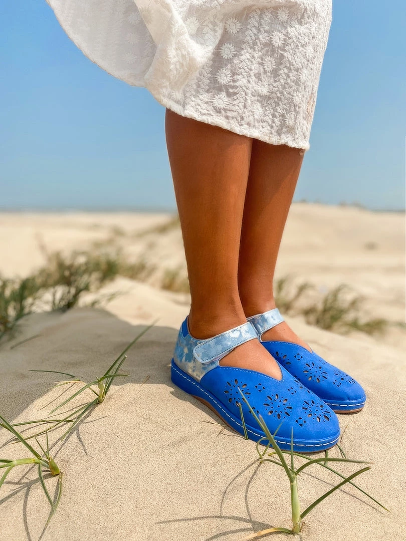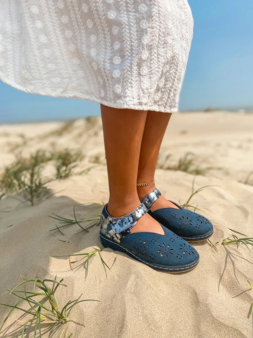 Simple, cute, and oh-so comfy, this pair of sweet Mary Janes sandal makes a chic finish to your ensemble as its tie dye detail is just in trend.