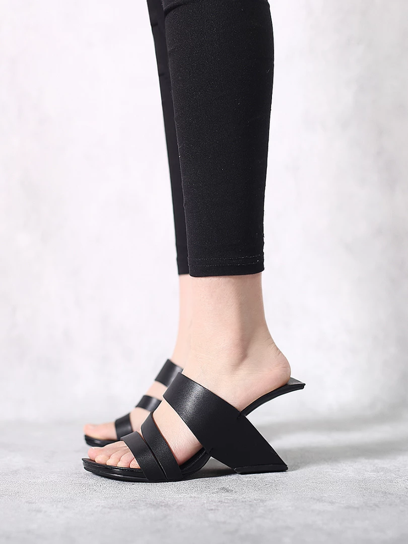 Adorn your feet with the art-inspired style of these modern open-heel slides from the most signature design from jady rose.