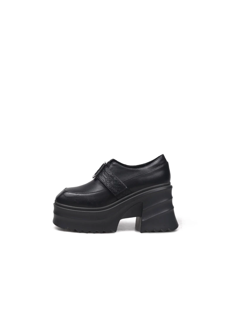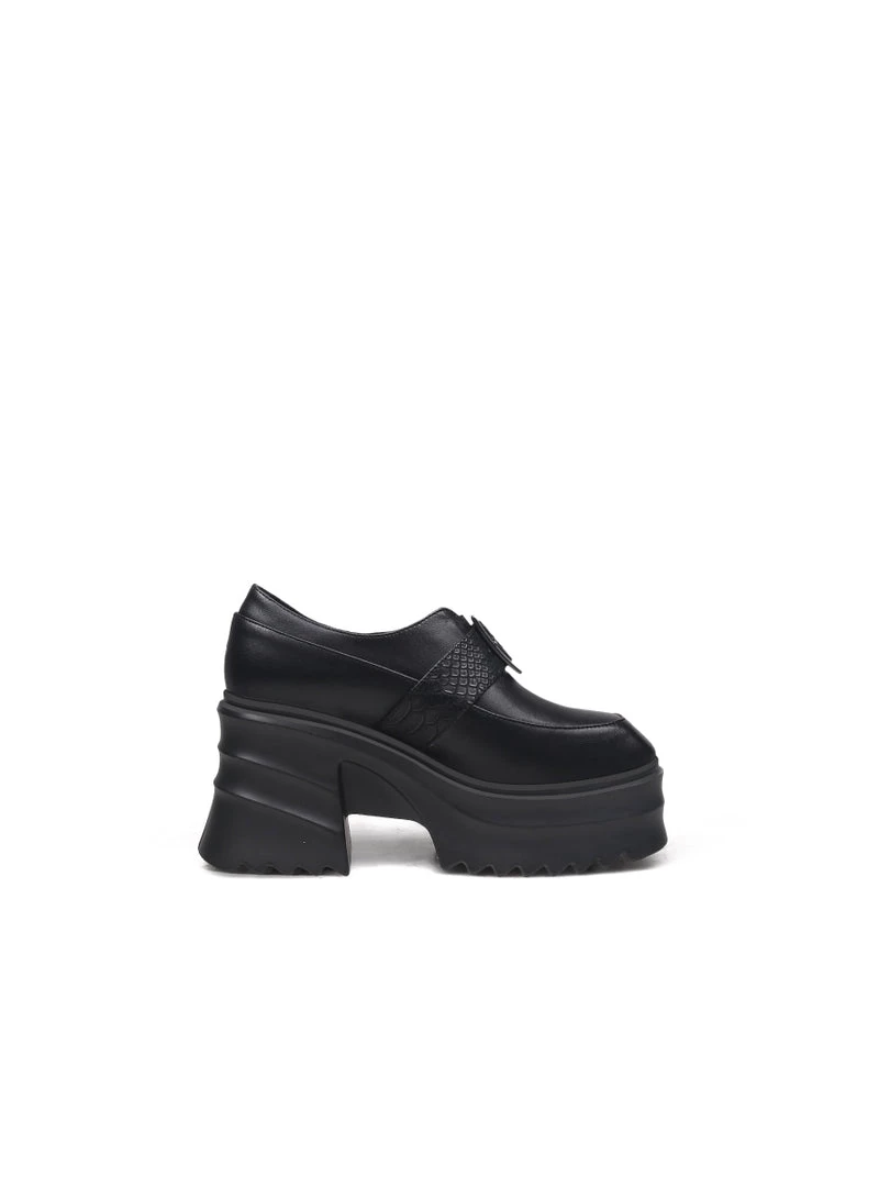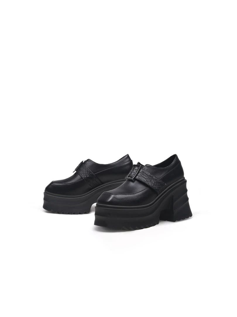 Borrow from a classic menswear look with these chunky oxford loafer that have a croc strap pattern entry and patent-cow leather upper.