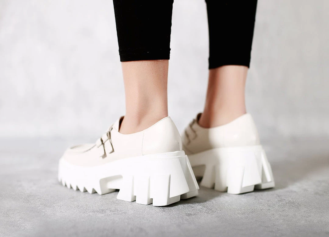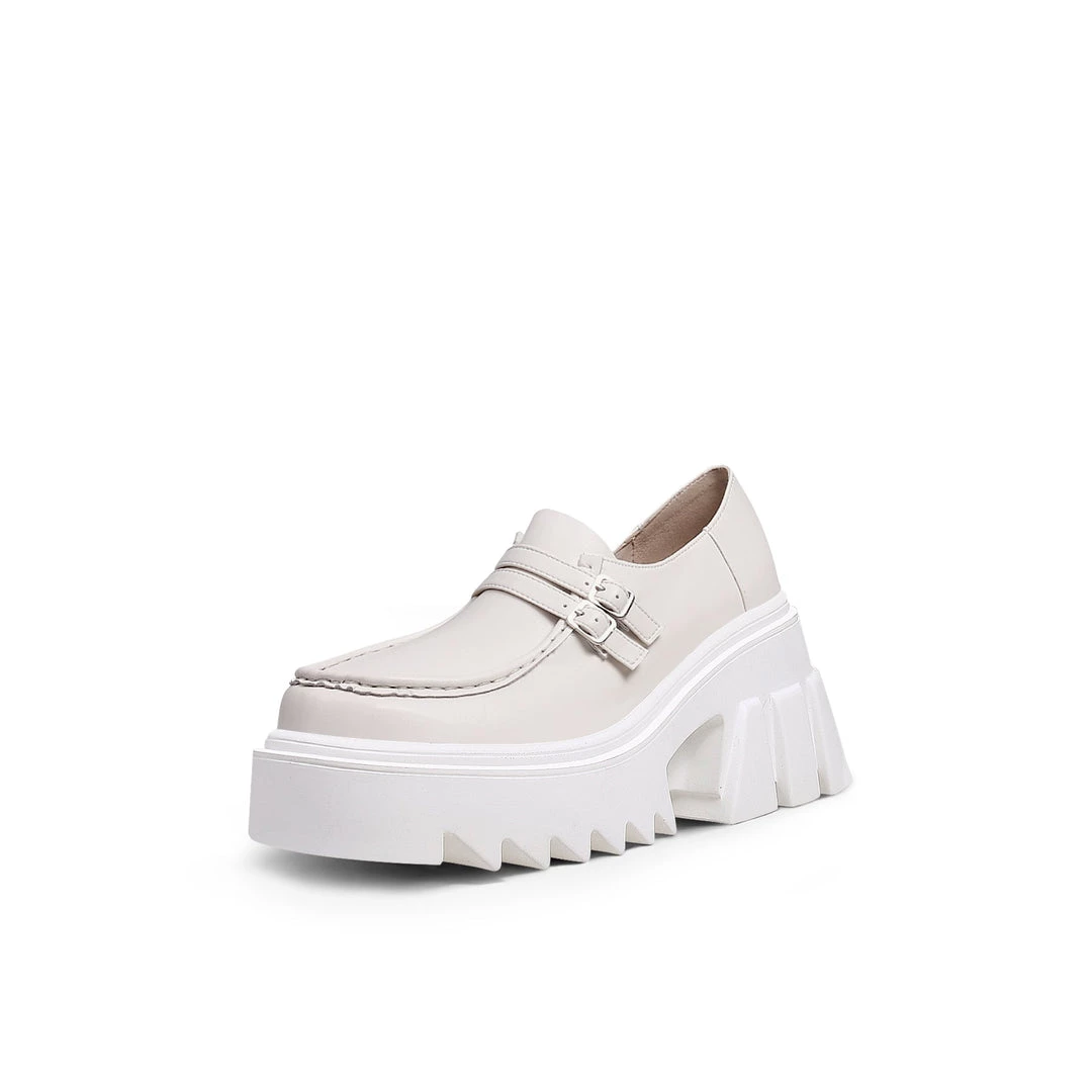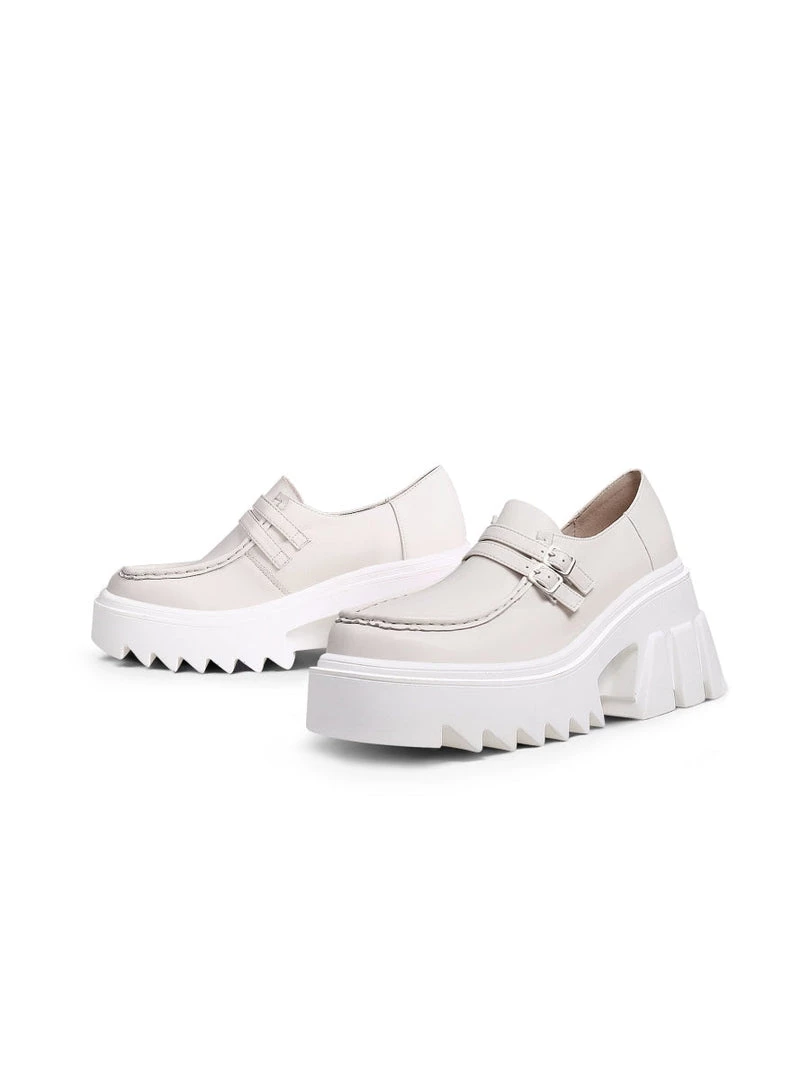 Jady Rose JadyRose | Chunky Heel Double-Buckle Loafer – Cream