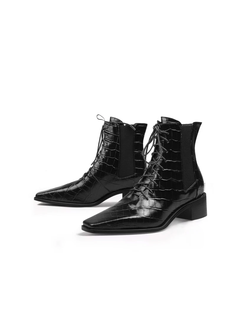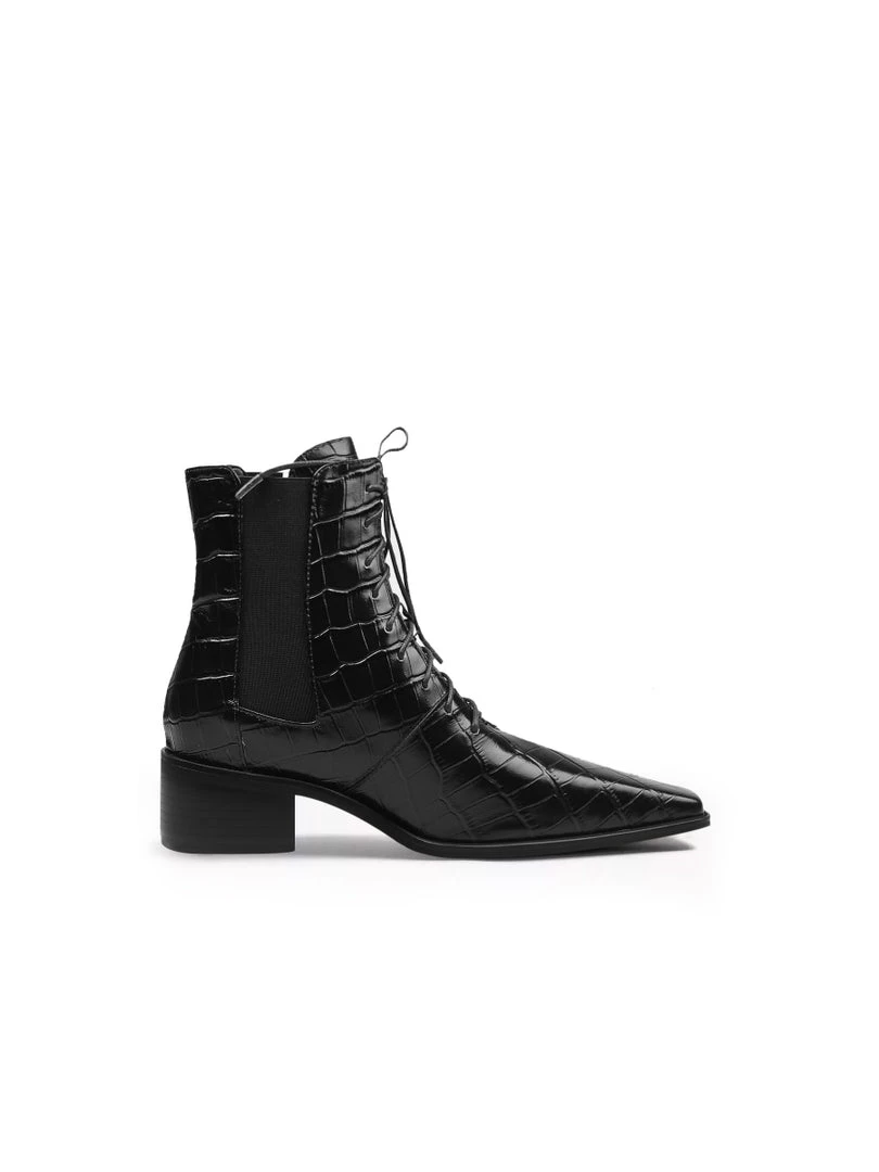 Update your footwear assortment with this modern take on the lux Chelsea boot that features croc-embossed finest leather details and a classic sharp toe for your elegant looking.