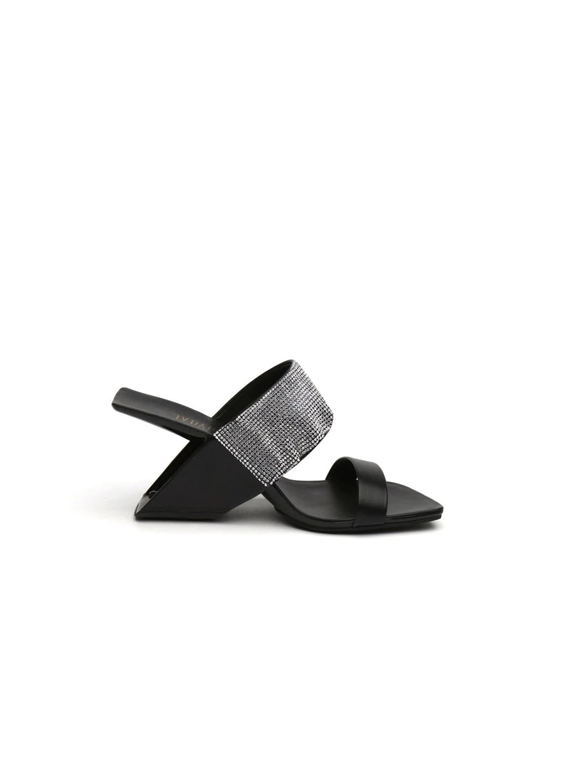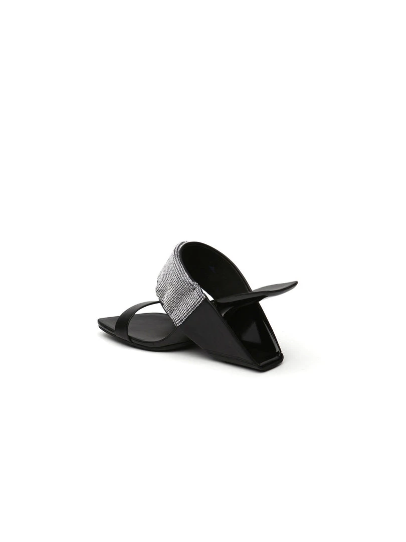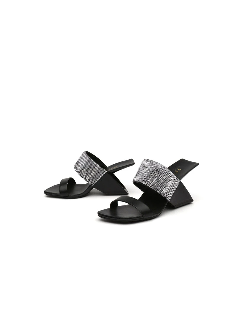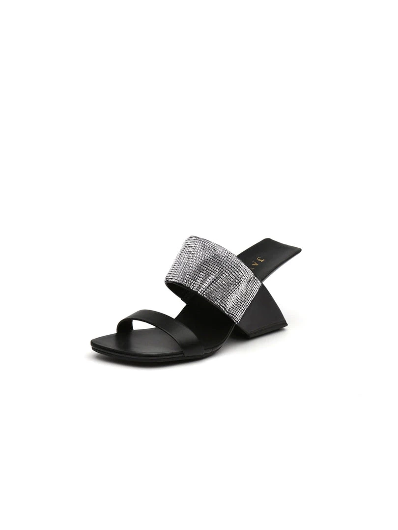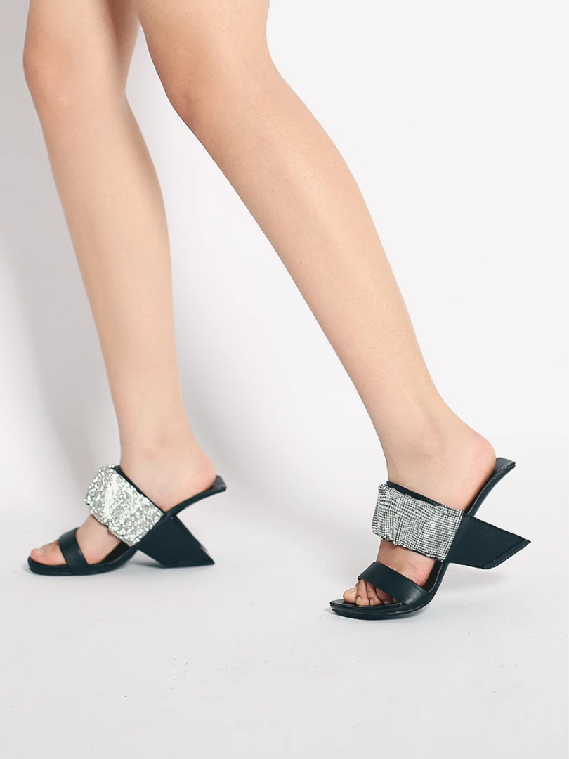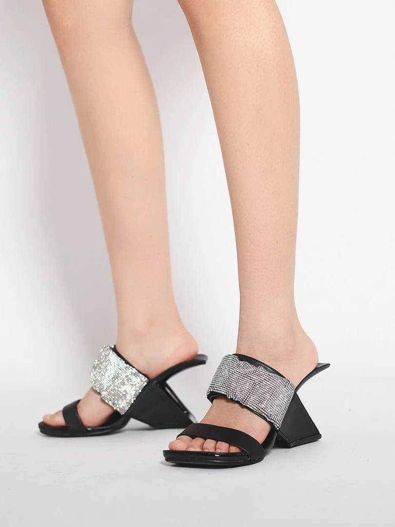 Adorn your feet with the lux-inspired style of these modern tower-heel wedge slides with shining rhinestone upper from the most signature design from jady rose.