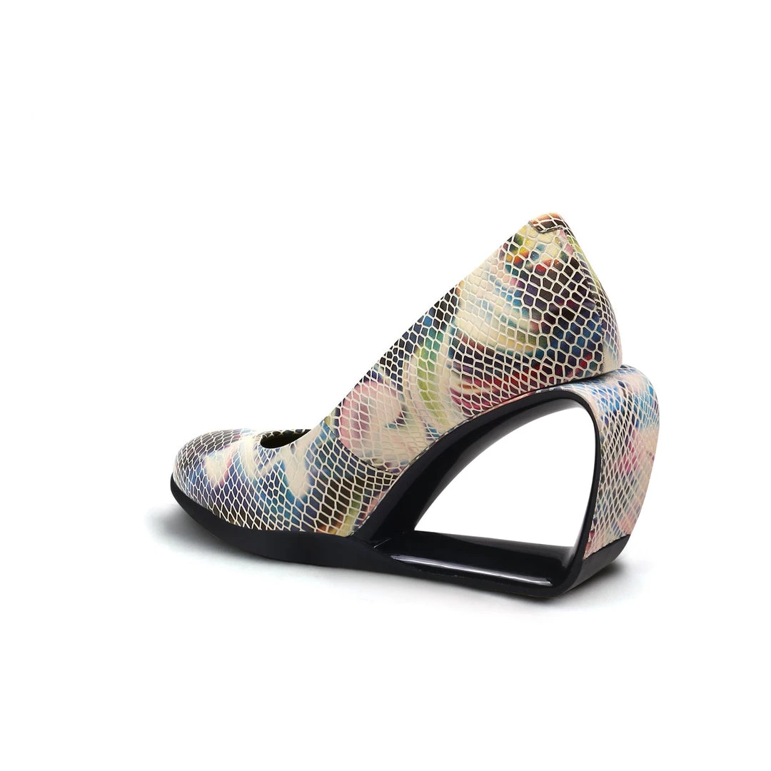 Add a contemporary touch to your elevated steps with these first layer cow leather pumps flaunting sophisticated pointed toes and a open triangle heel.