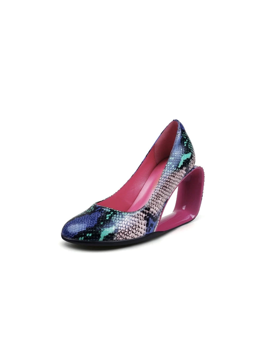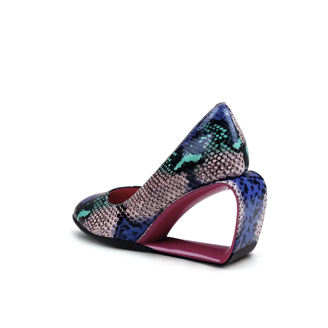 Add a contemporary touch to your elevated steps with these first layer cow leather pumps flaunting sophisticated pointed toes and a open triangle heel.