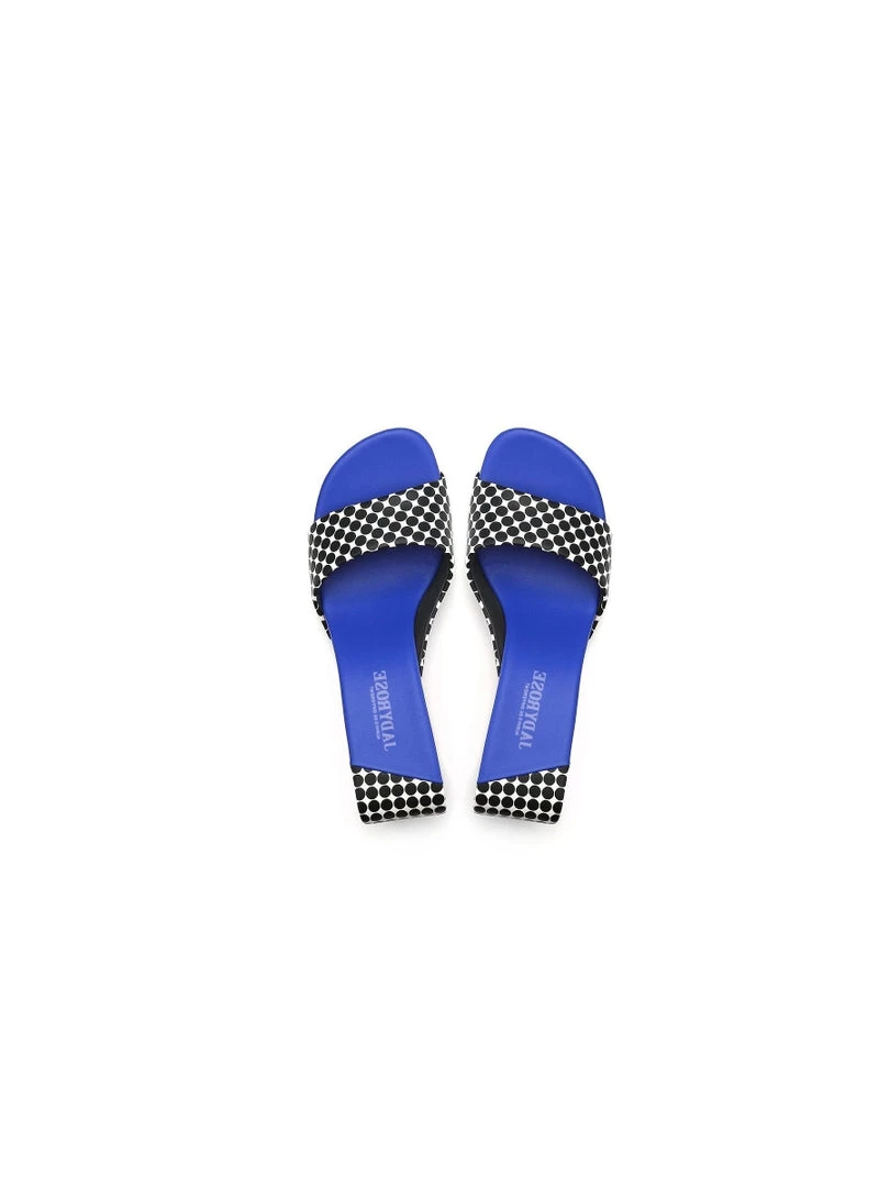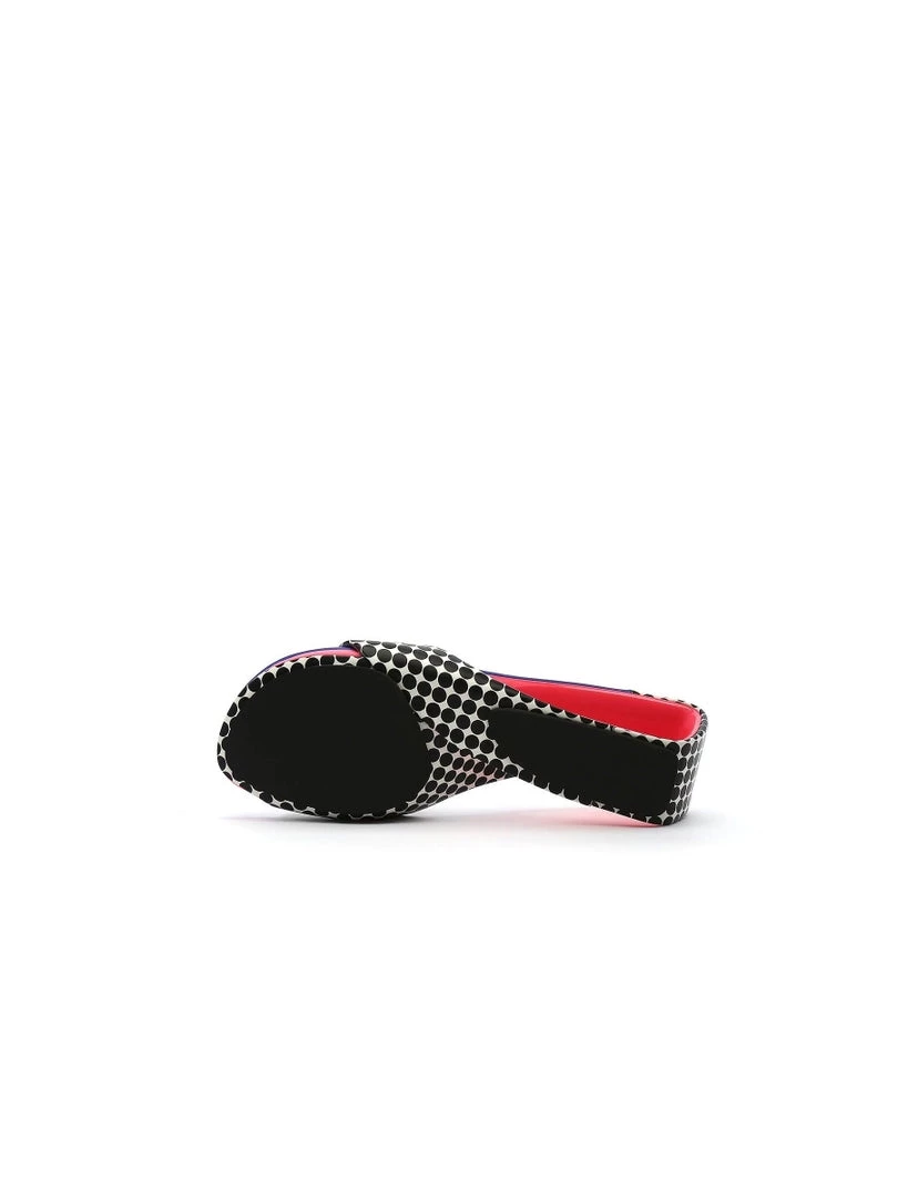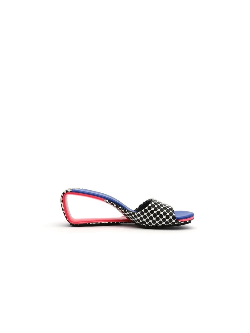 Adorn your feet with the colorful art-inspired style of these modern open twisted-heel sandals.