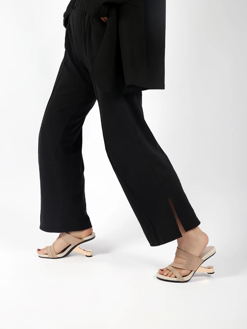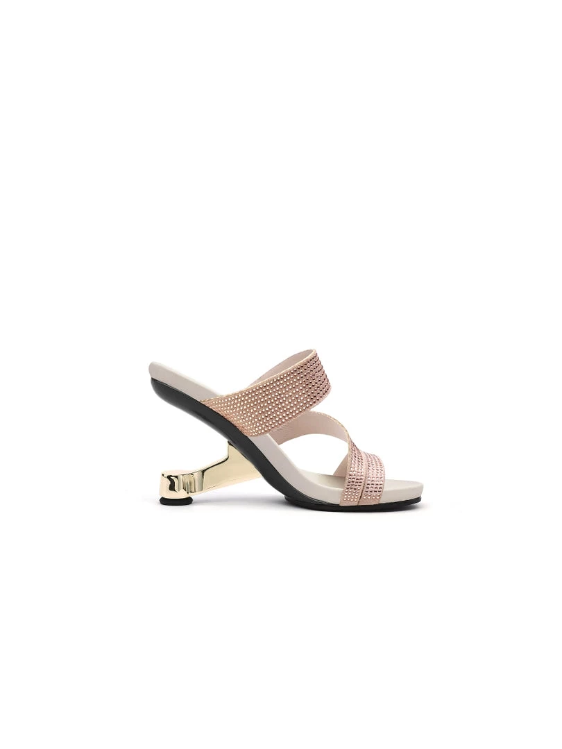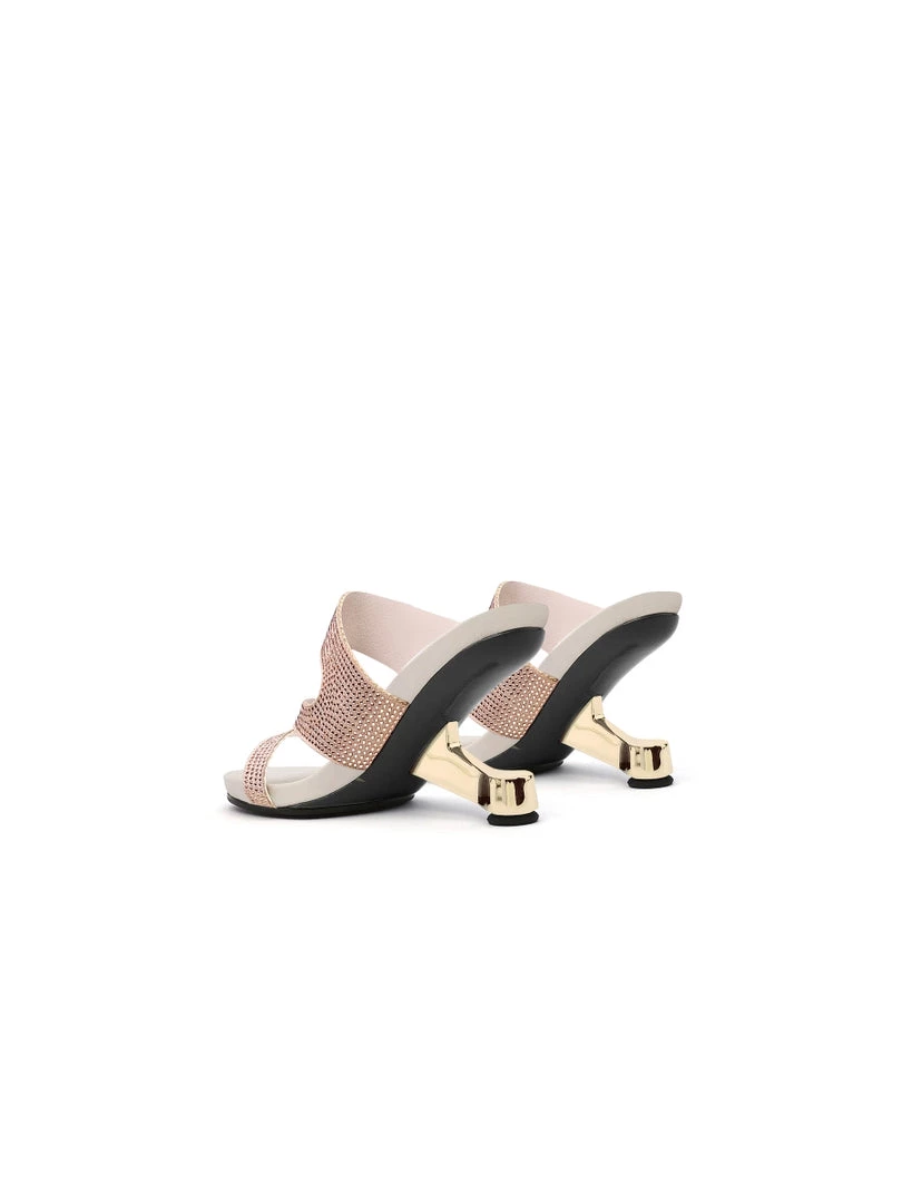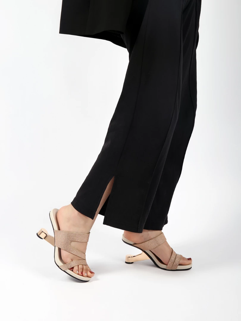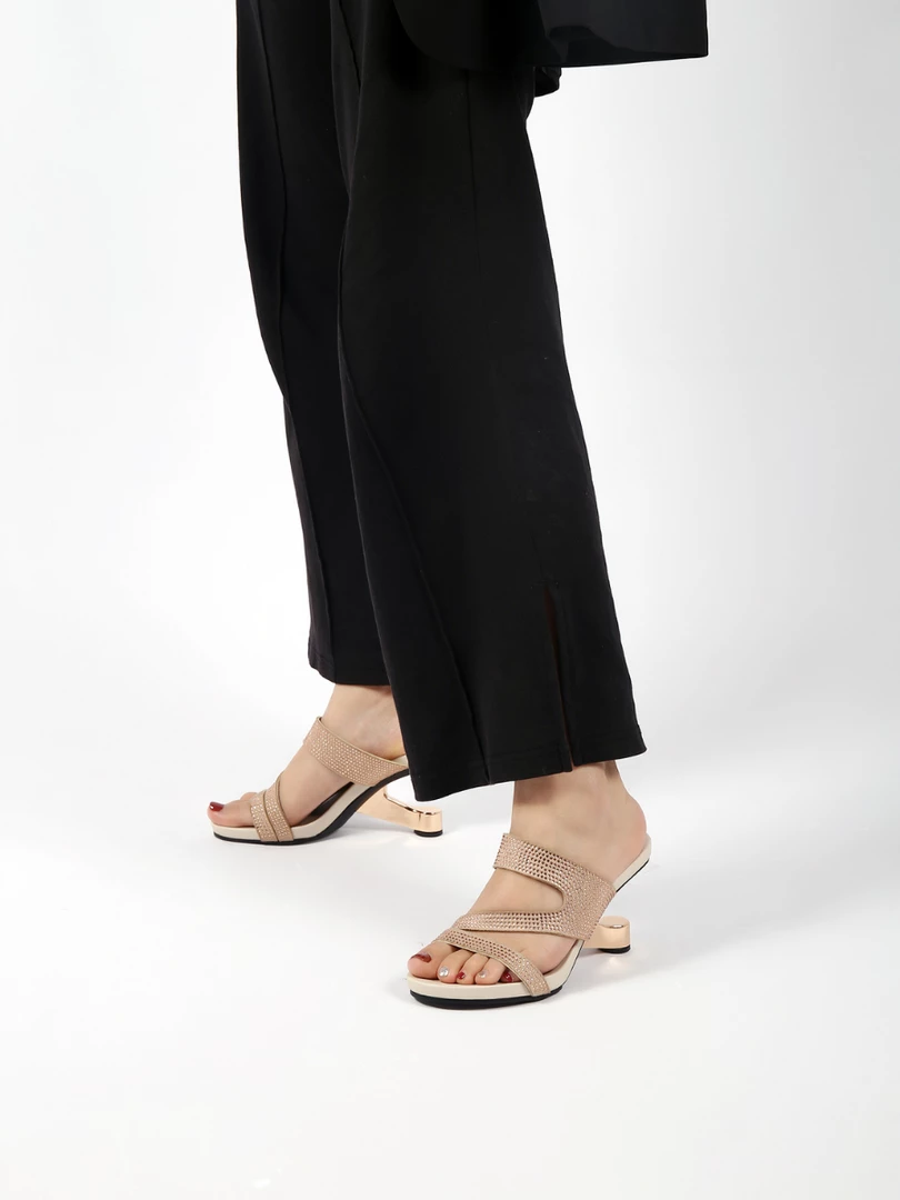Adorn your feet with the art-inspired style of these modern elevator-heel slides features the cut-out and rhinestone design to lift your elegant looking.