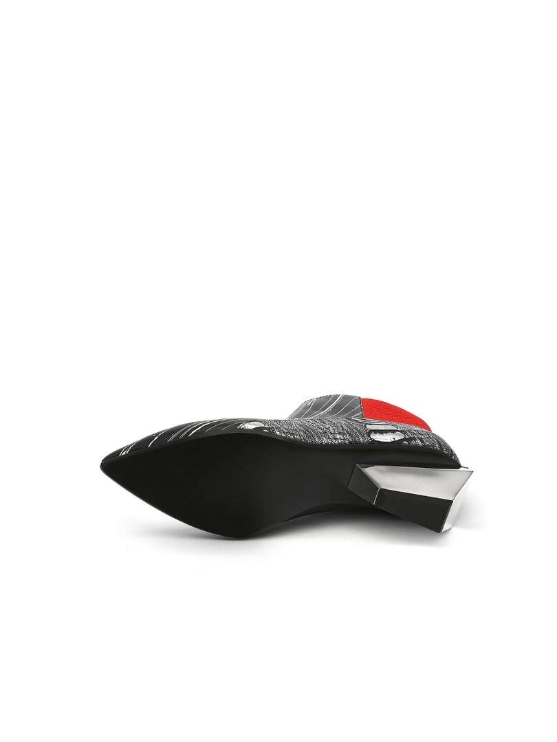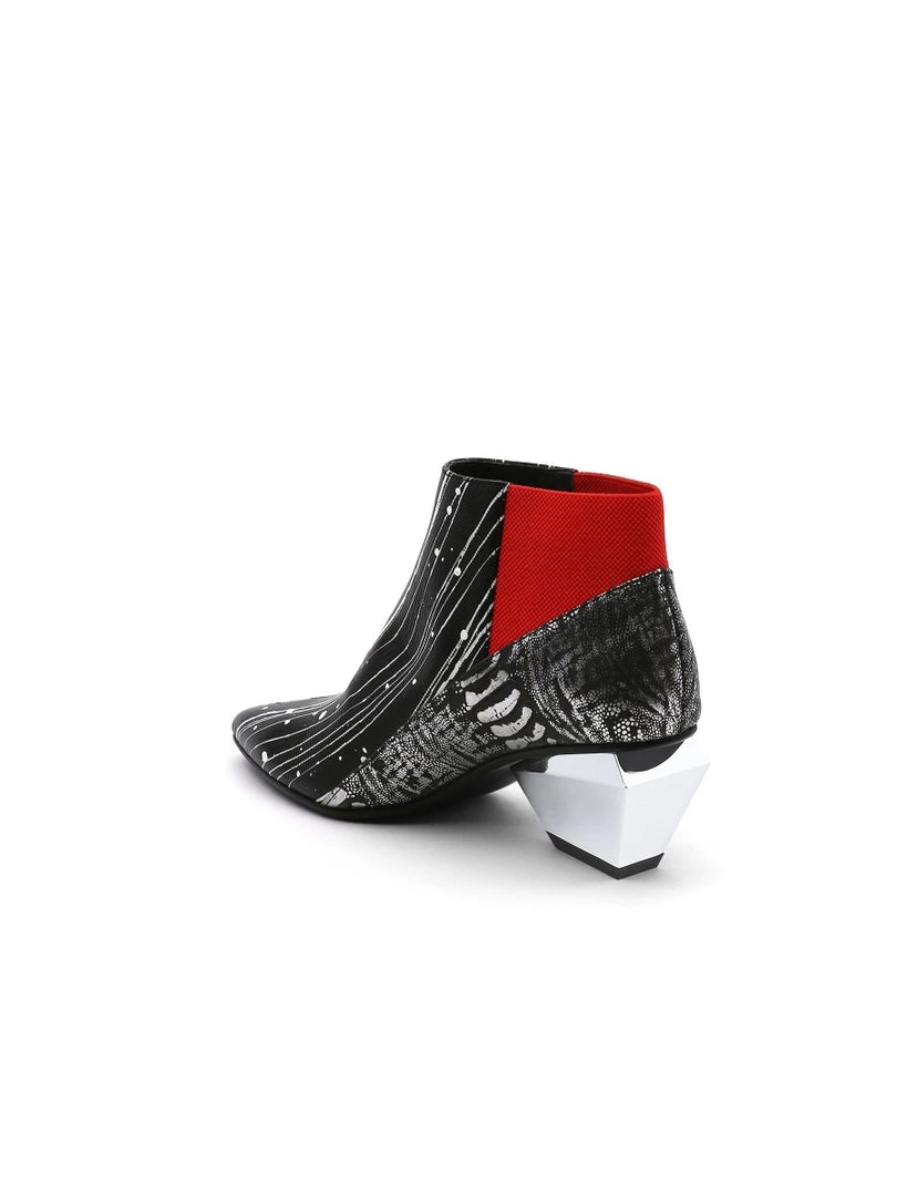Go for a contemporary look in these marvelously modern booties, that are sure to turn heads thanks to the structural block heel and allover eye-catching pattern.