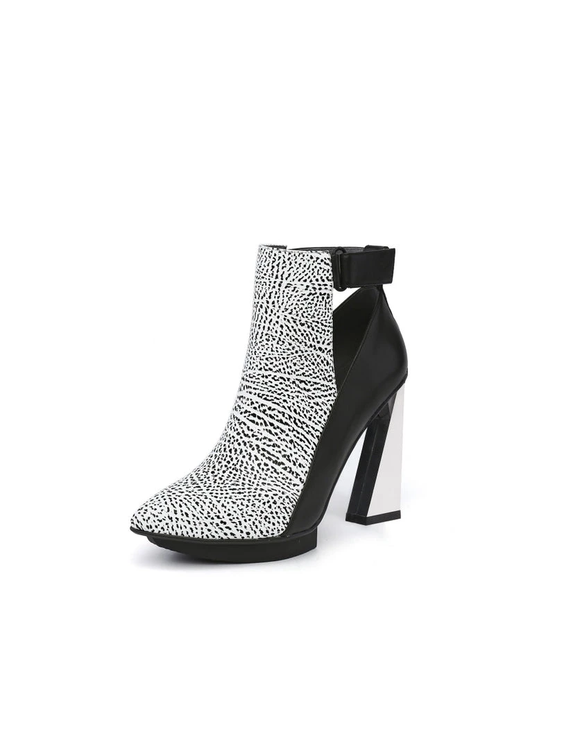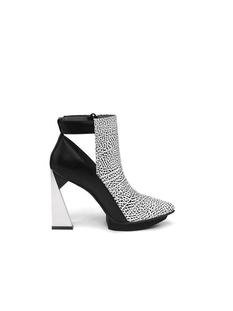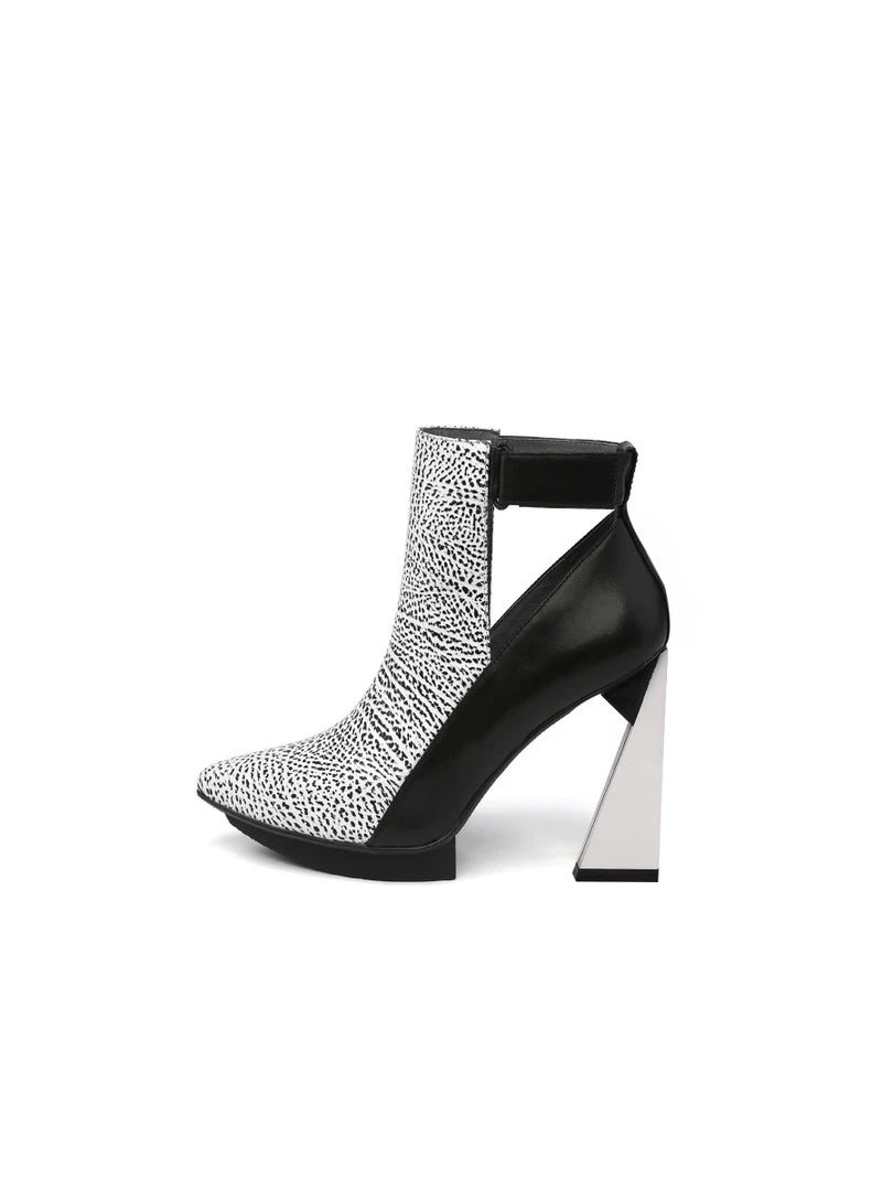It’s all about the lux details for this boot that impresses with a sky-high triangle shaped heel. Its minimalist cut-out design allows it to work well with a range of styles.