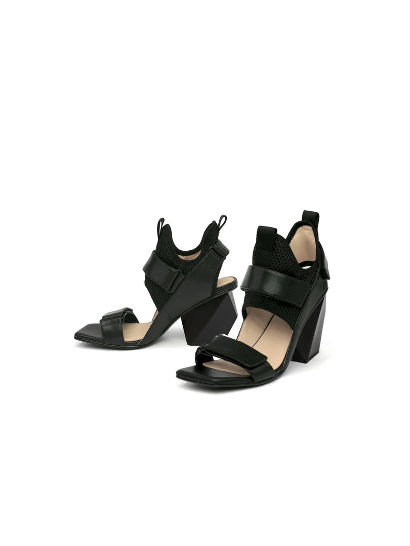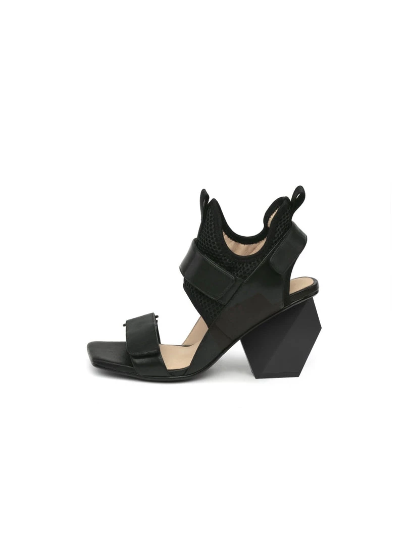 You’ll be fielding the question, ”Where did you get those unique heels?” over and over again when you step out in style in these mesh heels that have a sleek and shiny look with a geometry heel.