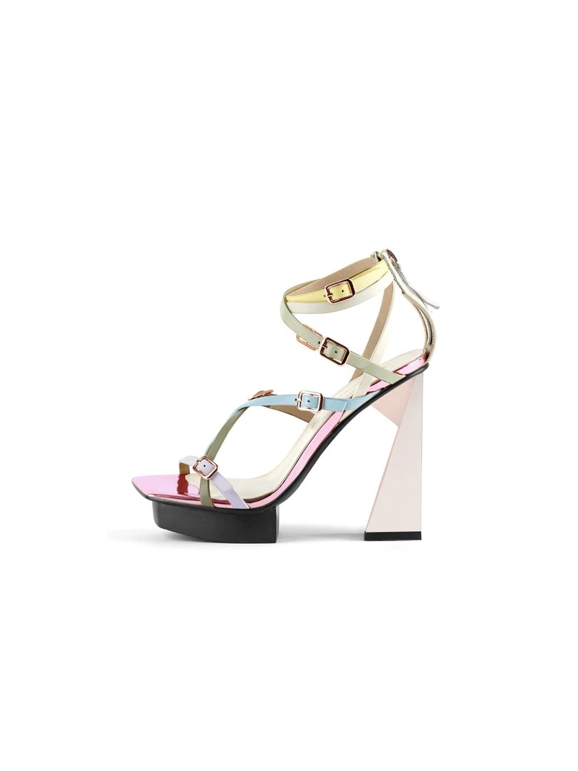 Slip on these super luxury leather ankle strap heels featuring an acute triangle heel to instantly elevate your elegant look.