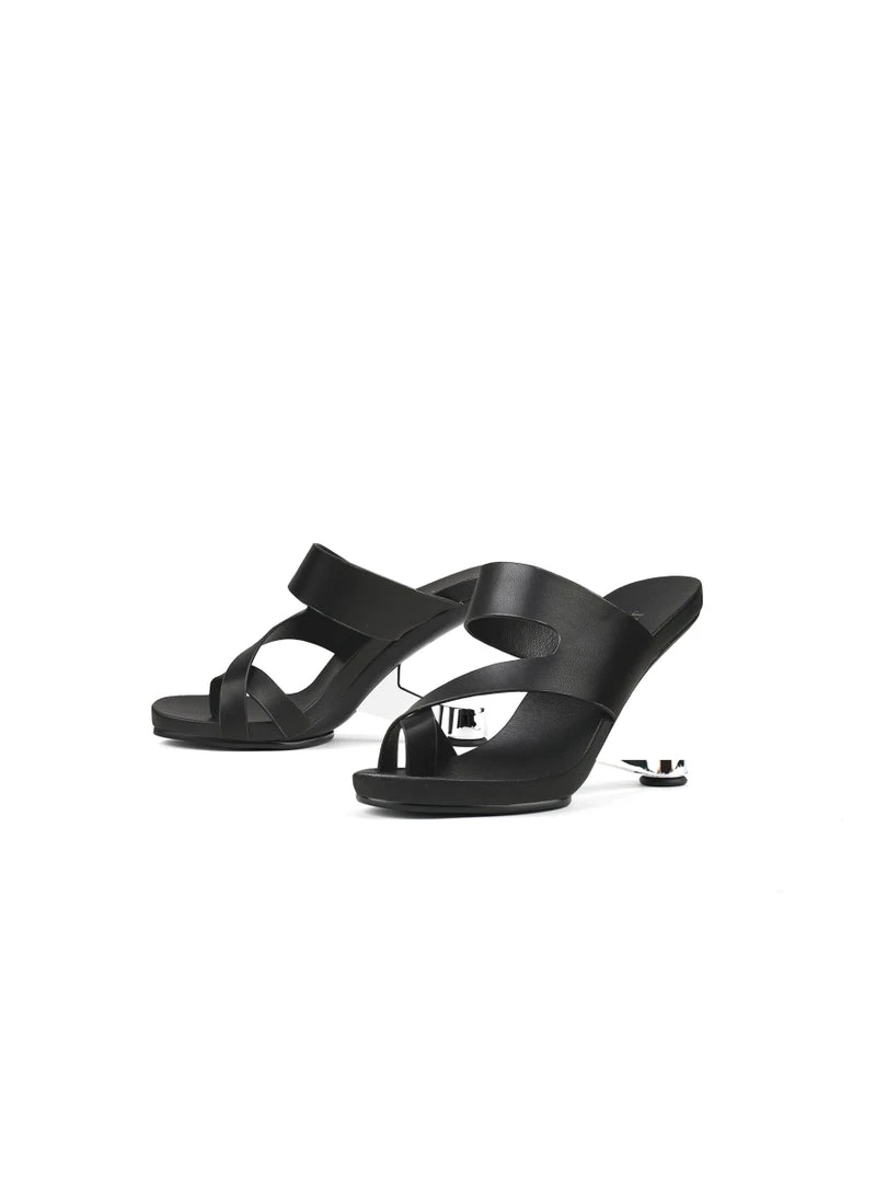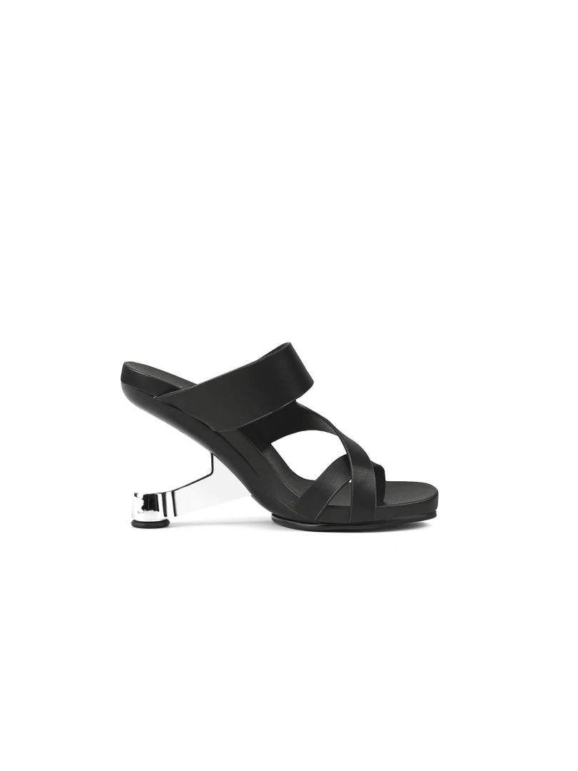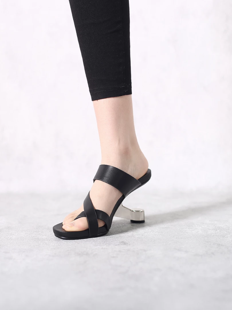 Adorn your feet with the channel-inspired style of these modern elevator-heel slides from the most signature design from jady rose.