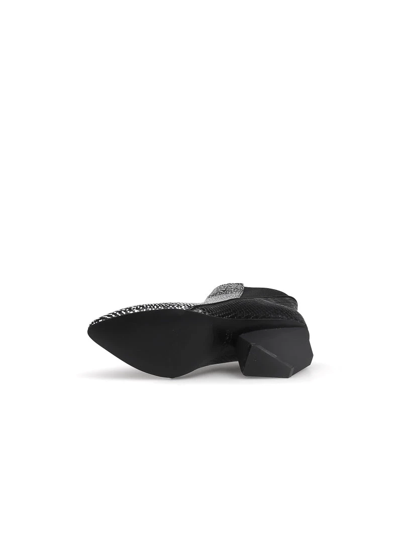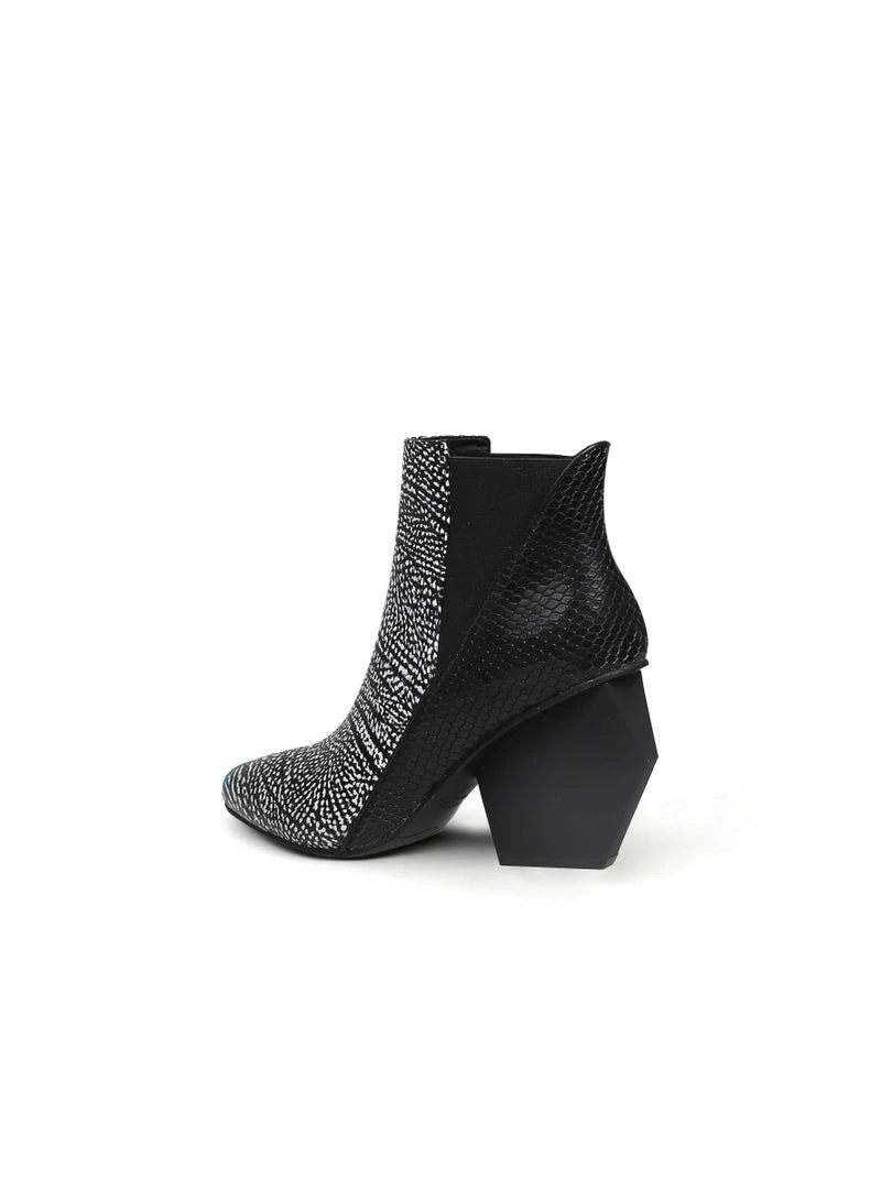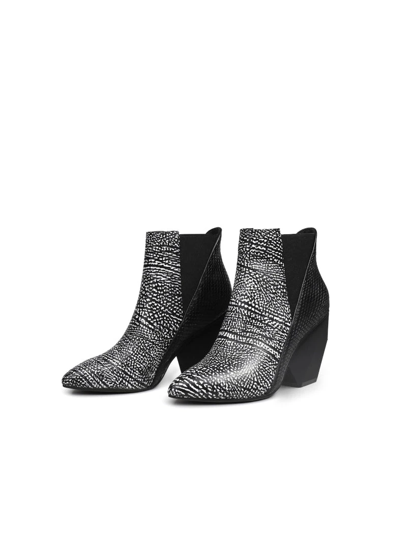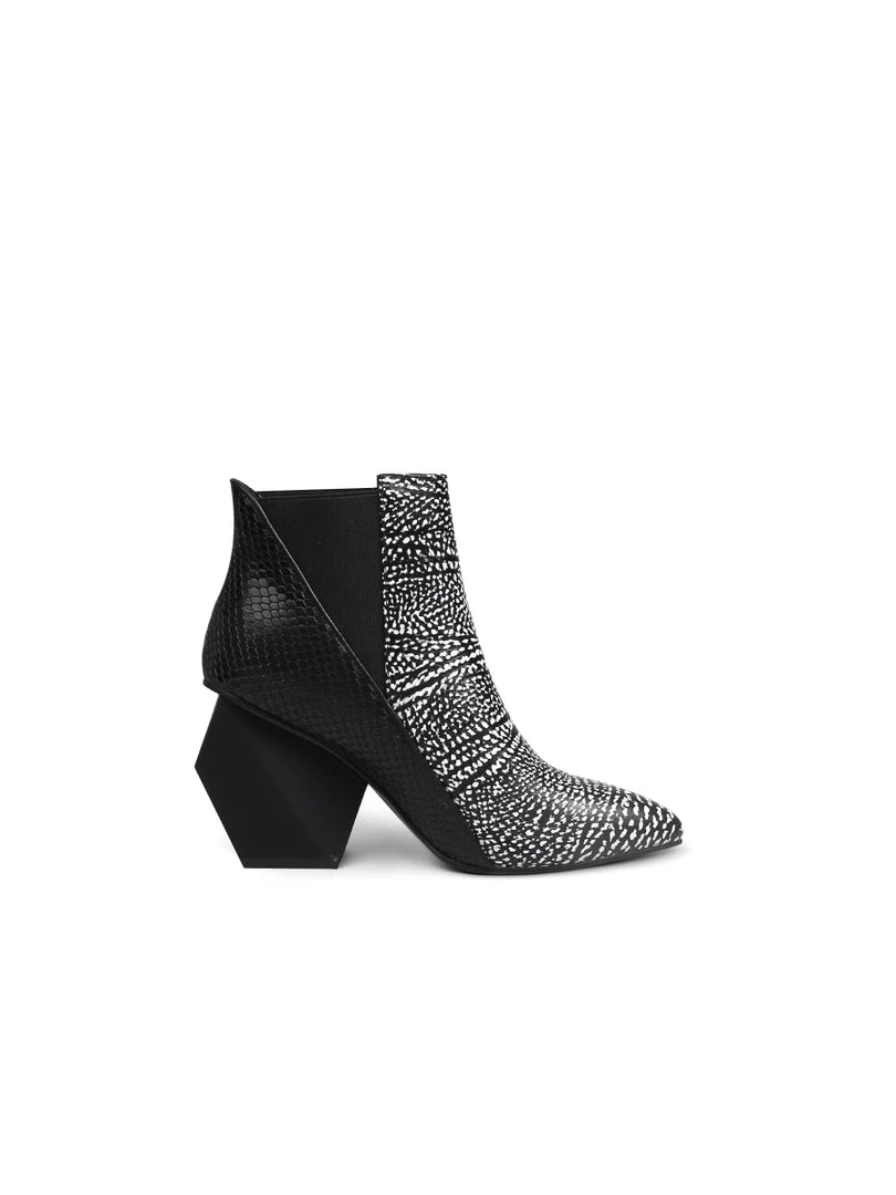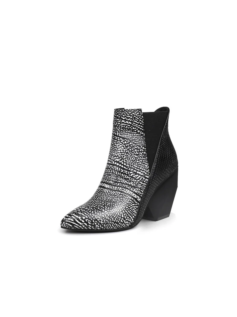 You’ll be fielding the question, ”Where did you get those booties?” over and over again when you step out in style in these leather boot that have a sleek and block look with a unique, geometry heel.