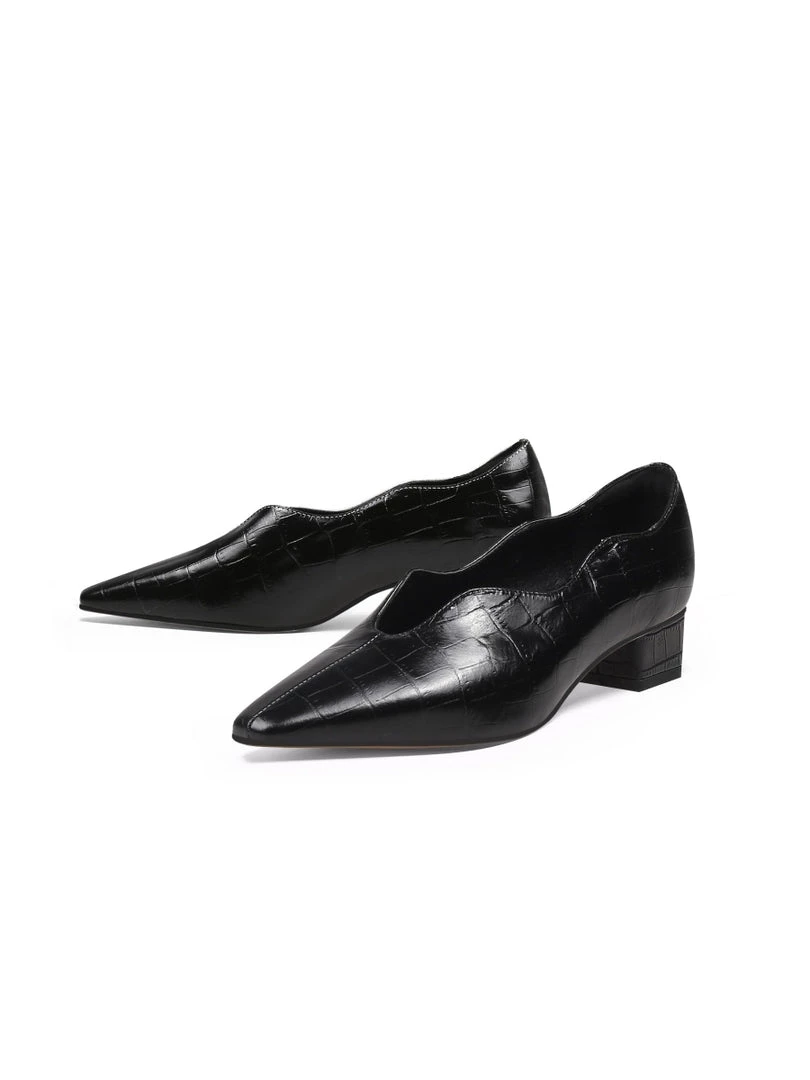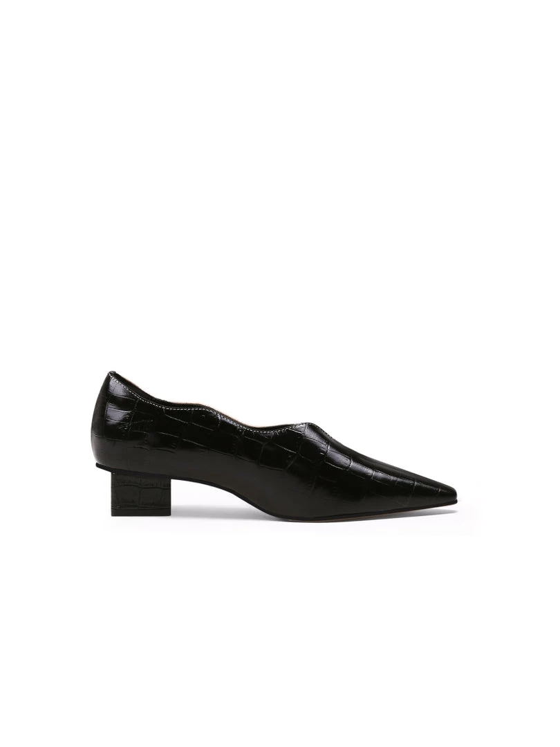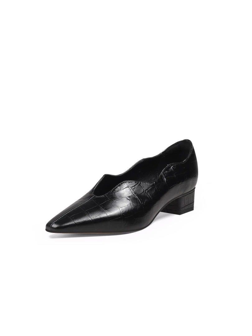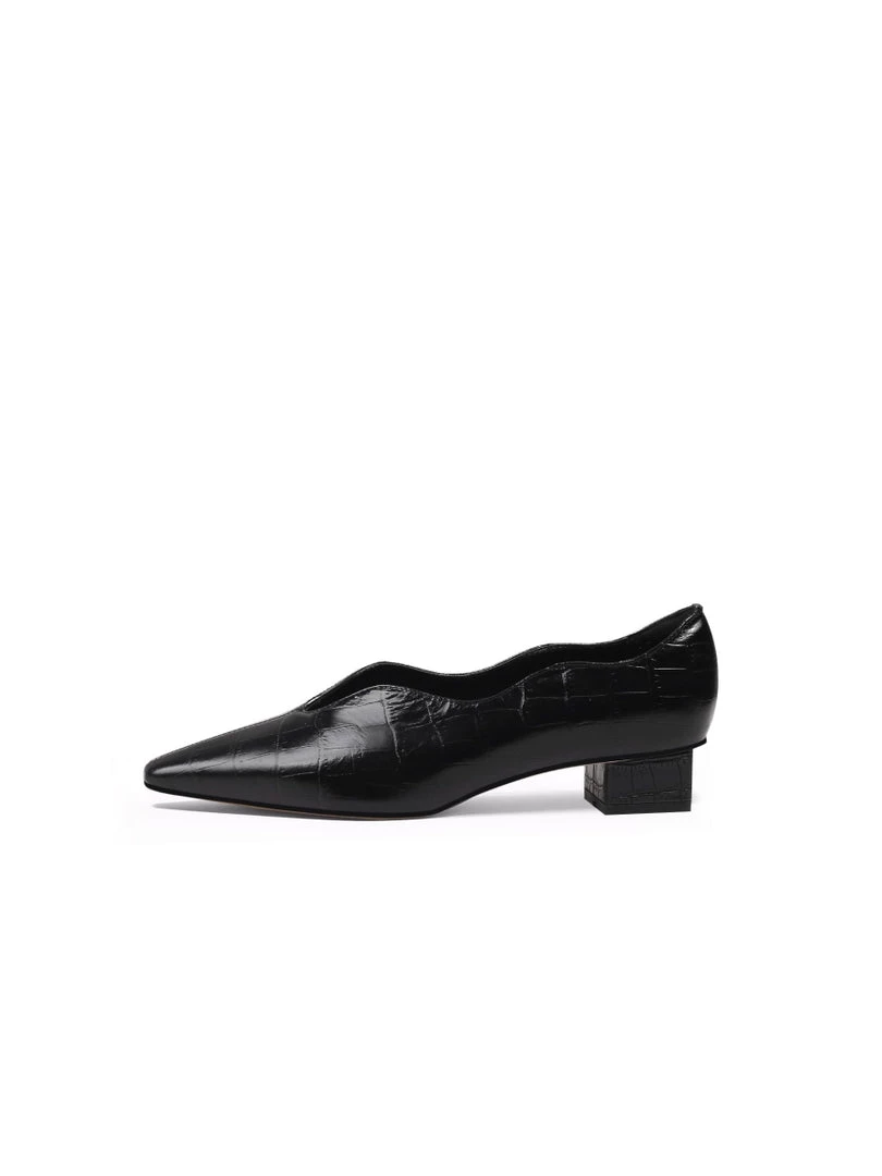 Slip on these croc-embossed lux leather featuring scalloped edges to instantly elevate your elegant look.