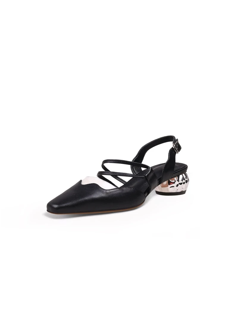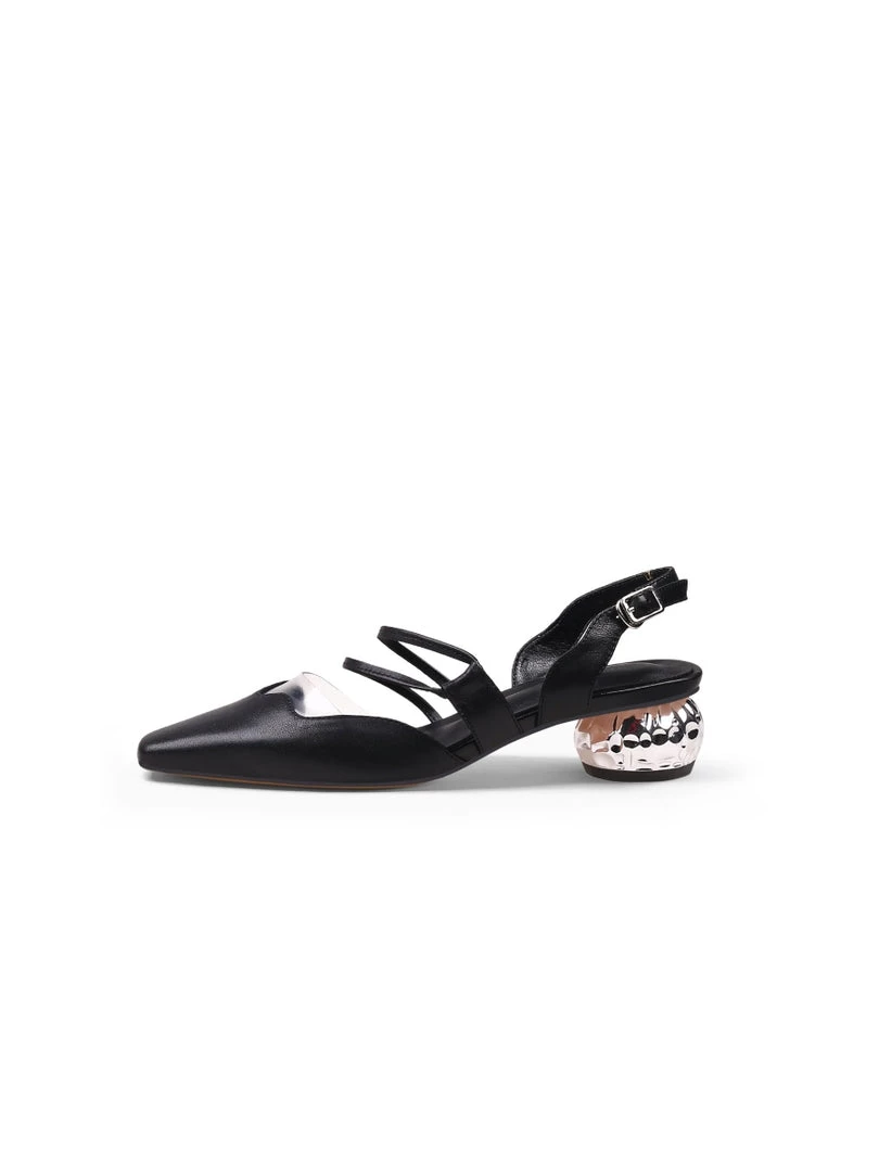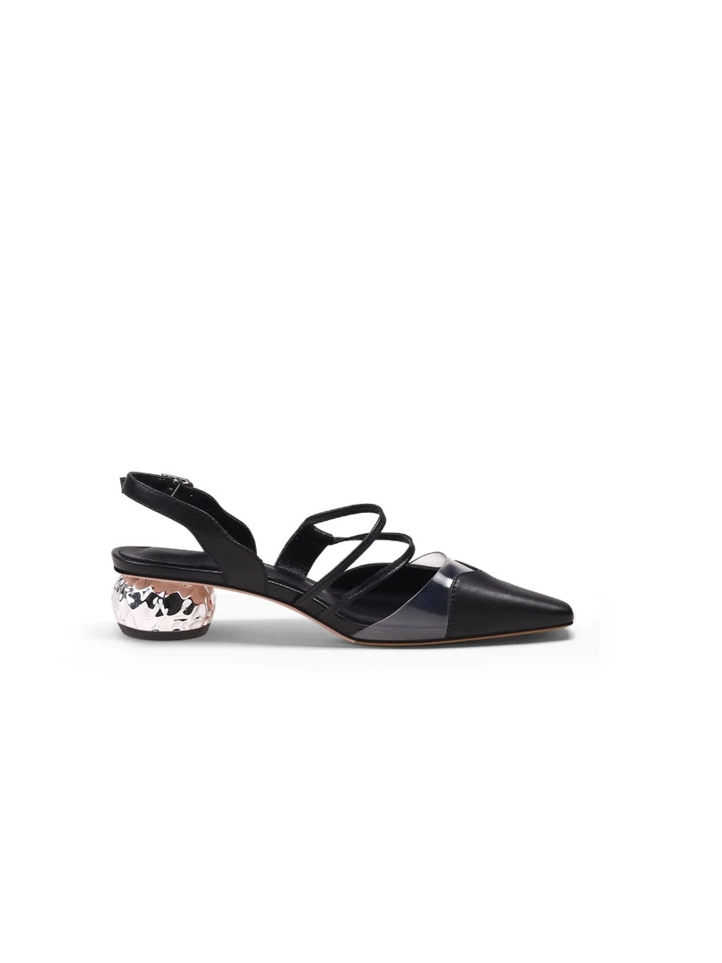 Amp up the glamour of your ensemble with these classic d’Orsay pumps updated with a crystal heel detail.