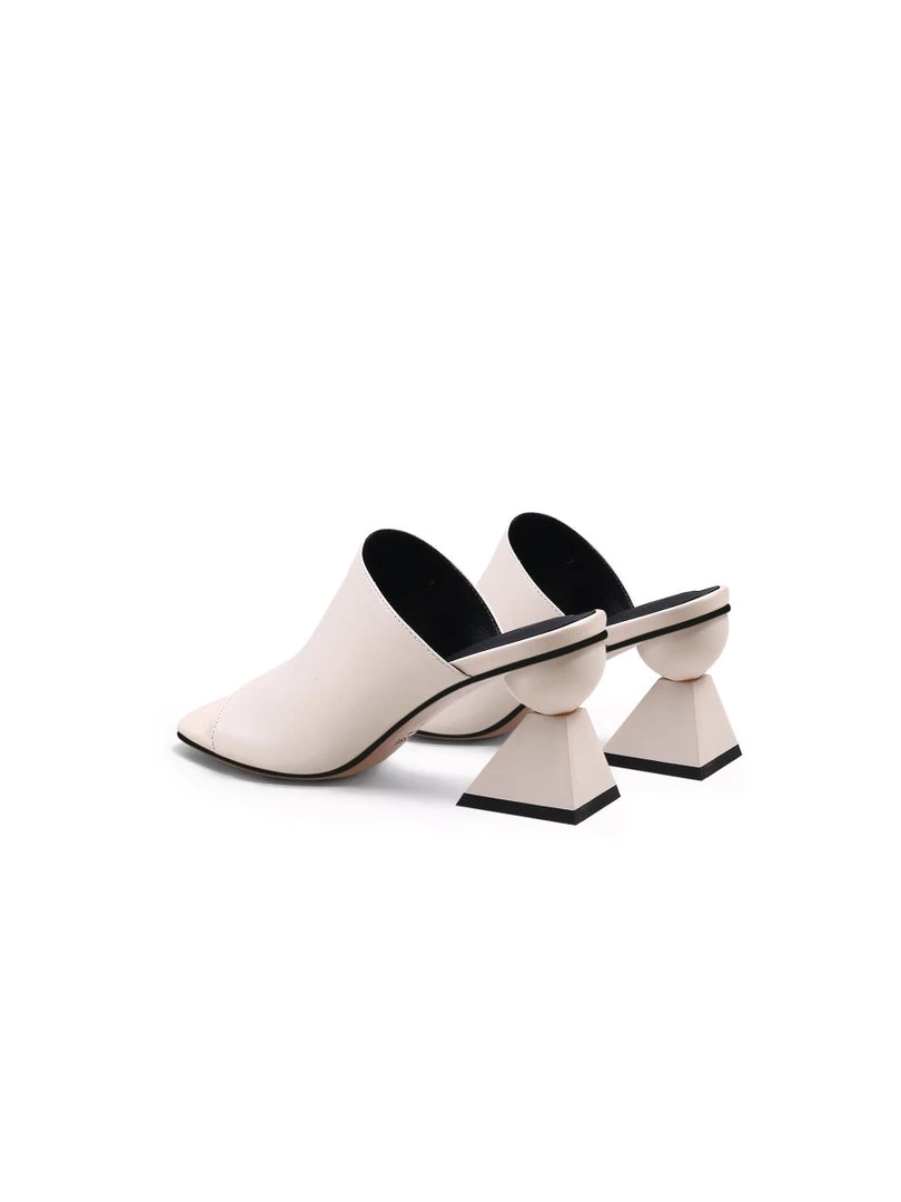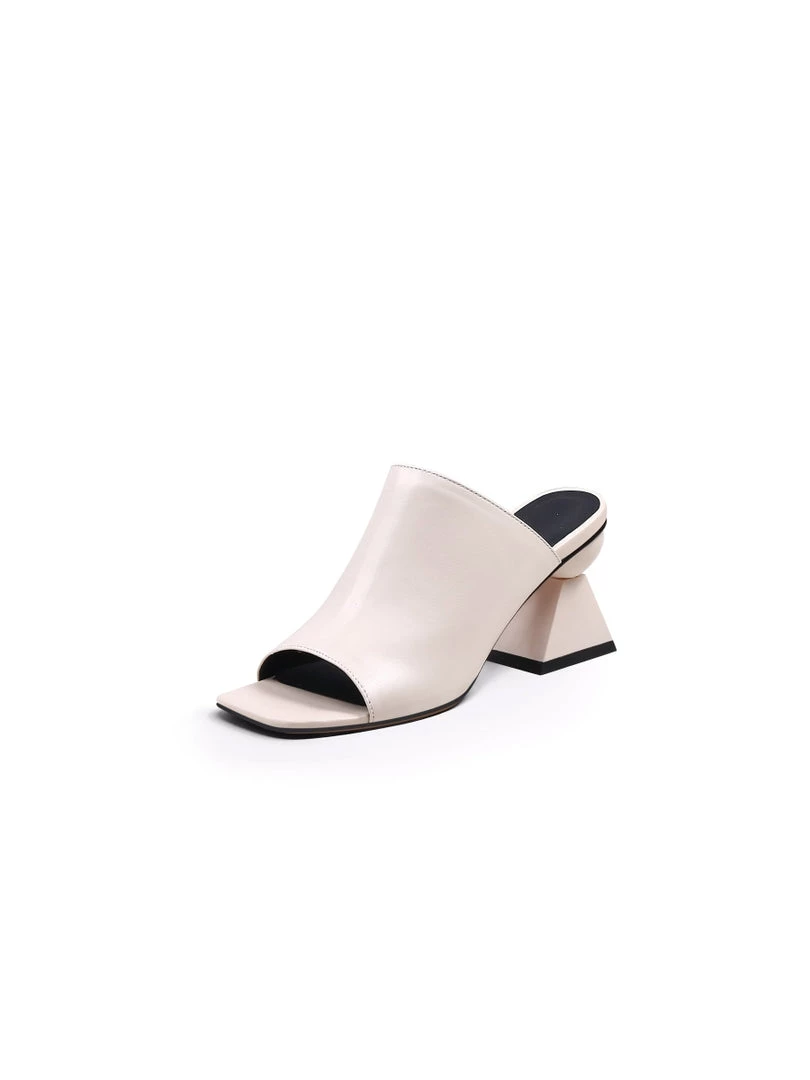 Bring fresh style to your footwear with these contemporary slides charmed with a modern-art-inspired triangular heel.