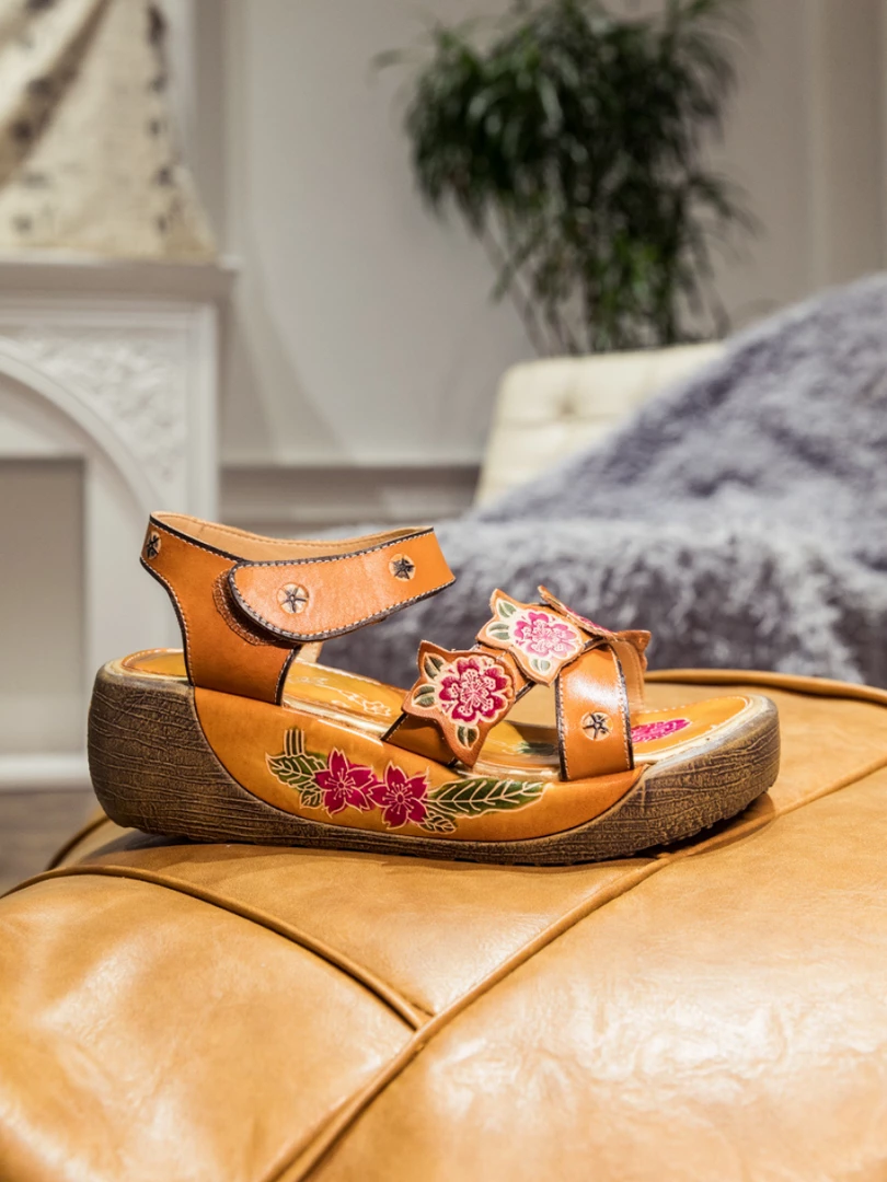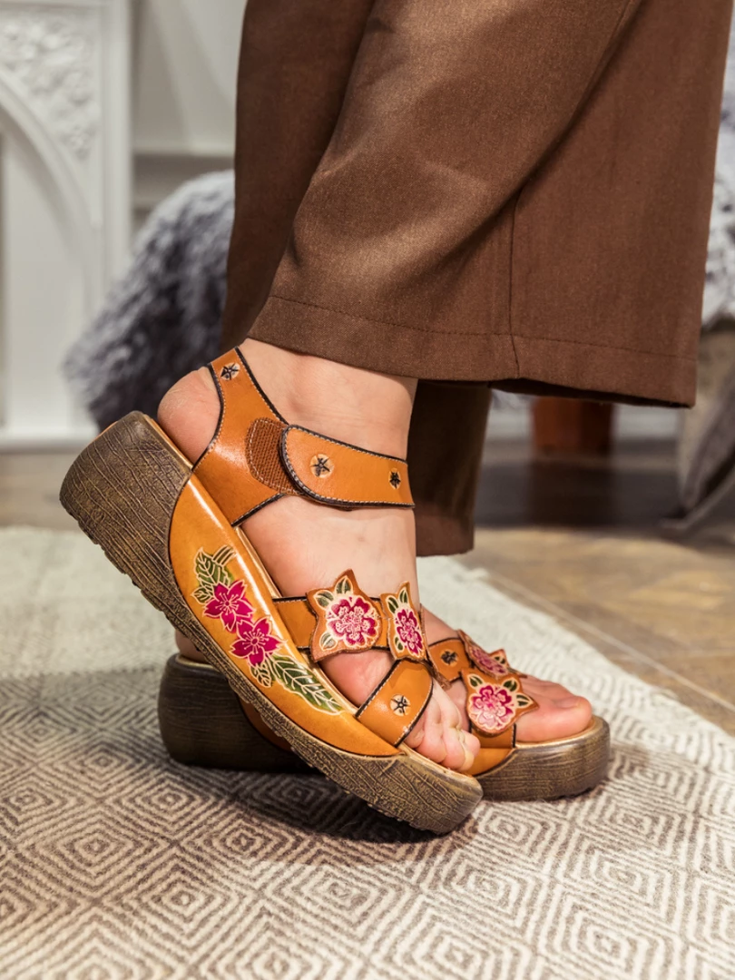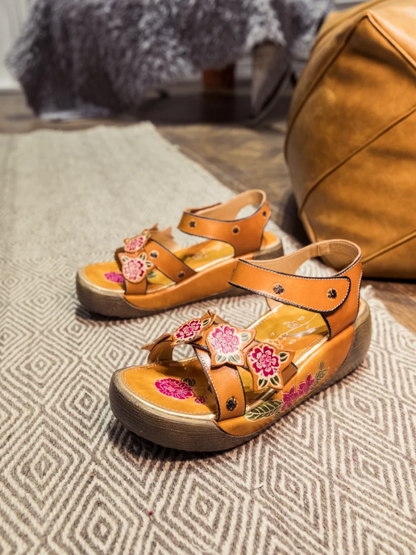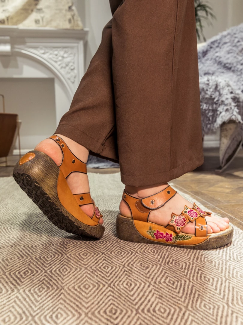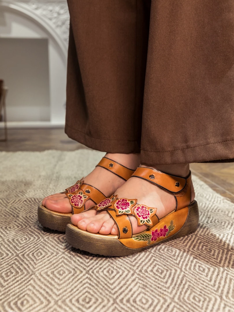 Made from fine leather and adorned with contrasting details, these mary jane style sandal will make you the center of attention the moment you stride into the room. A light weight platform sole with anti-skid traction lends height to your look and ensures a steady step.
