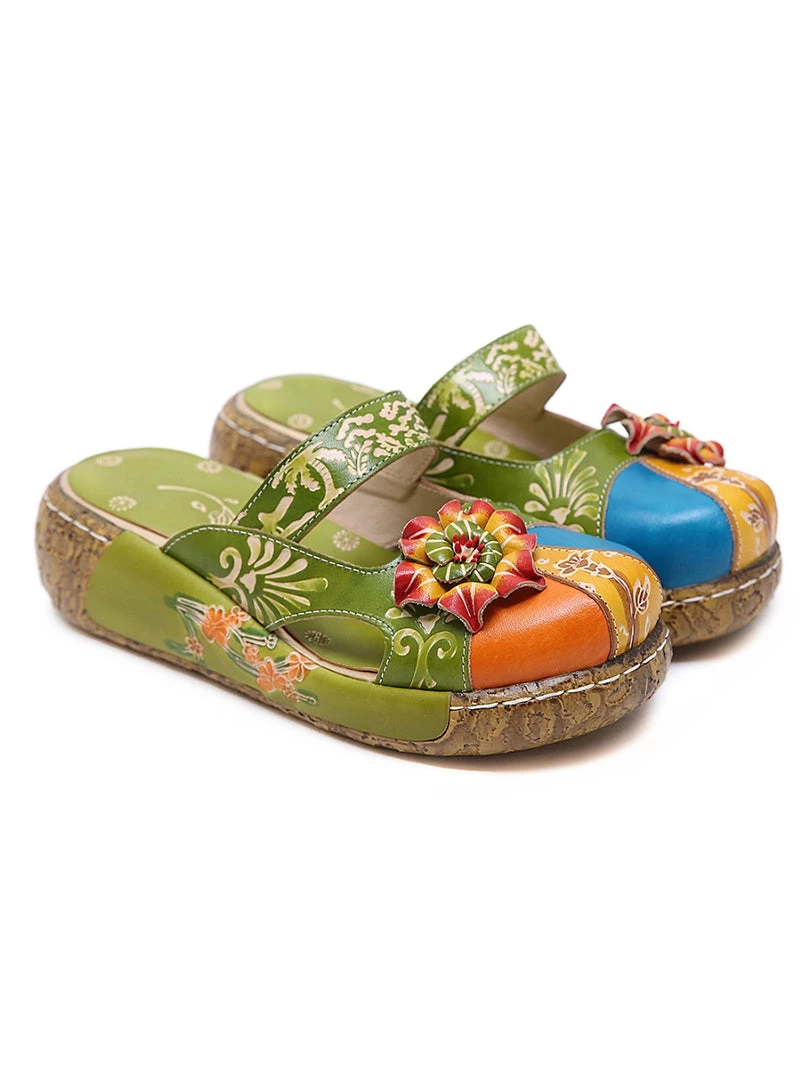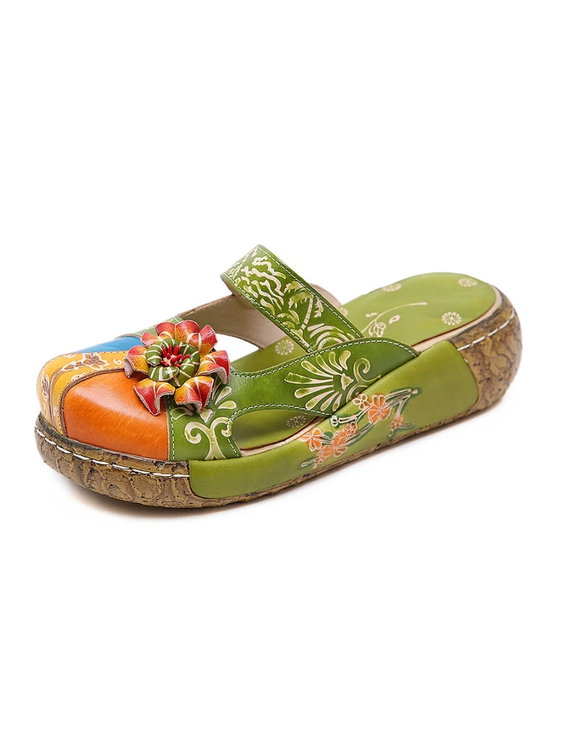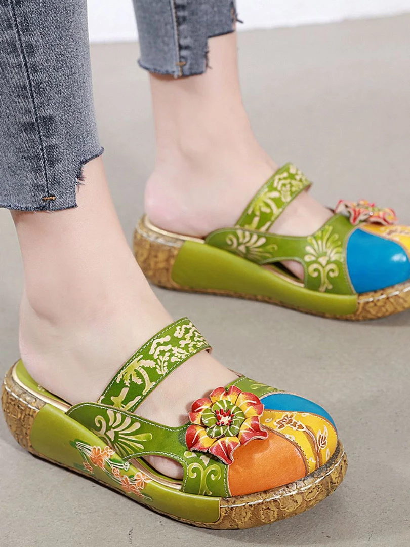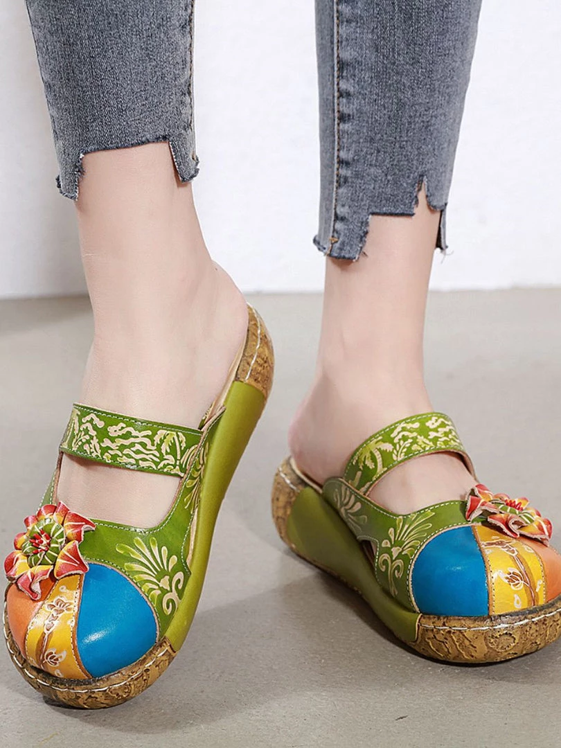 Put your fashionable foot forward in these floral sandals flaunting genuine leather and colorful appliqué for stylish sunny-day steps.