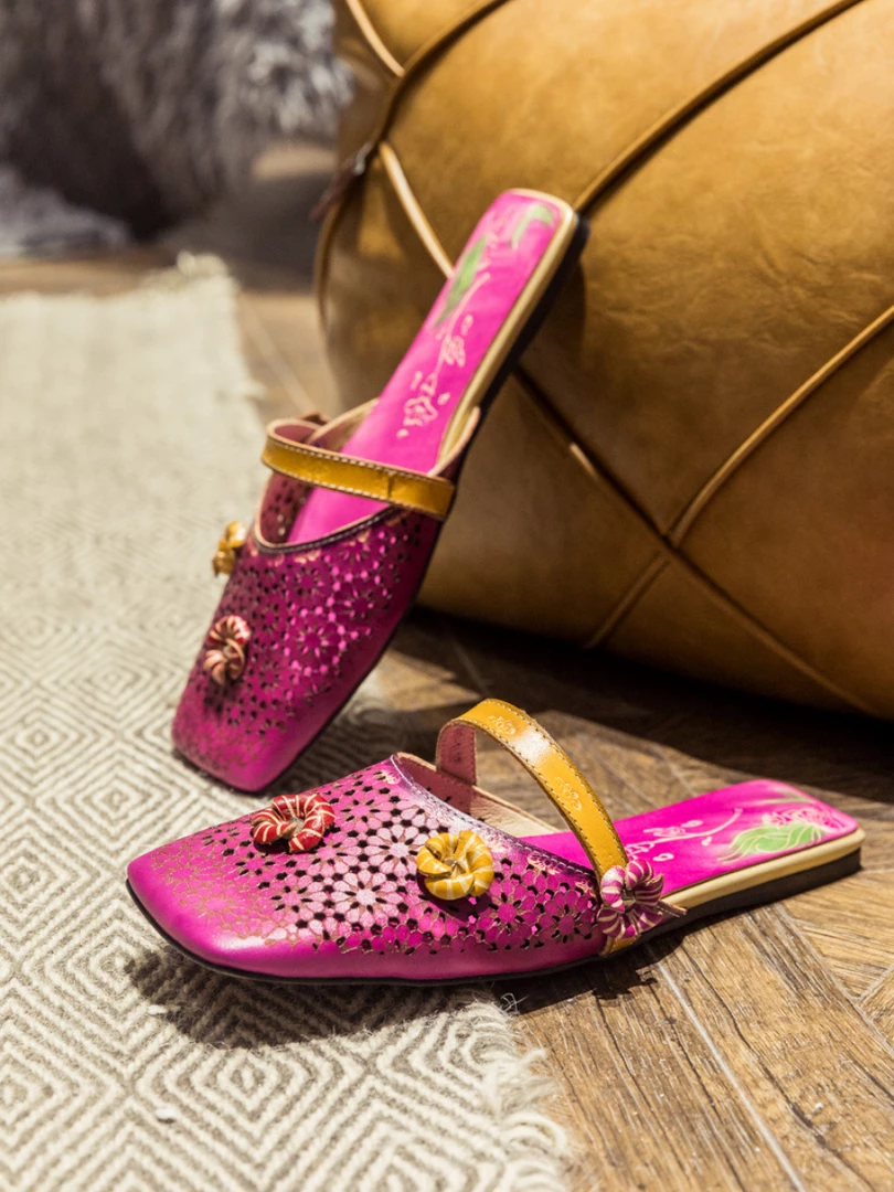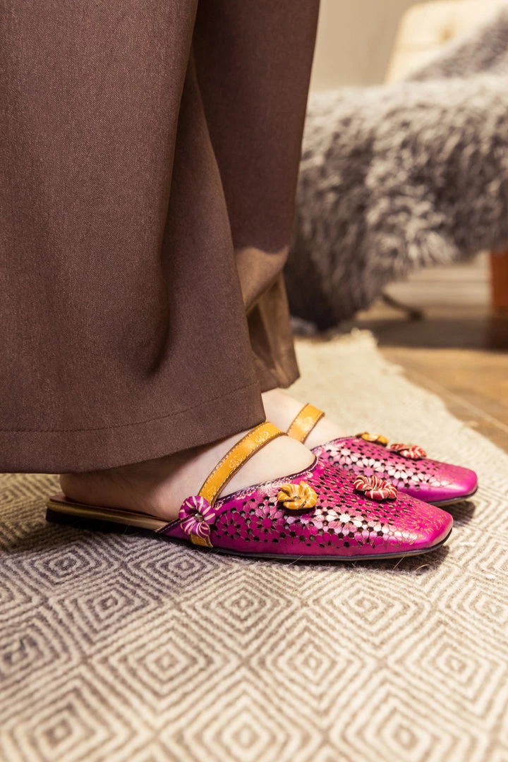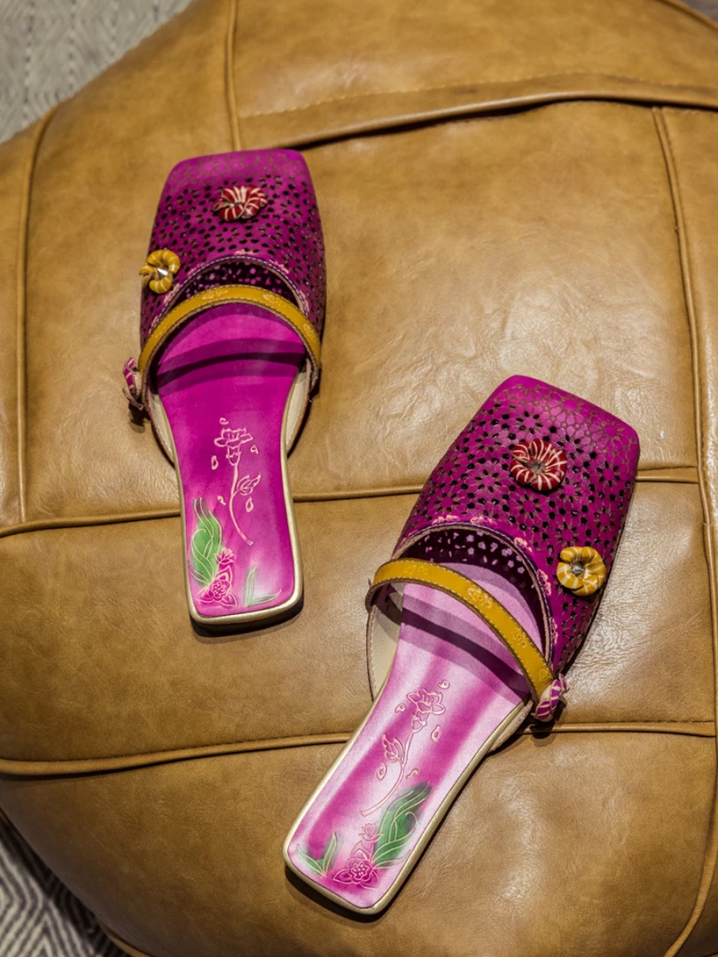 Give your casual walk a lux treat by striding a stylish look with this elegant leather floral applique sandal showing off an unique design.
