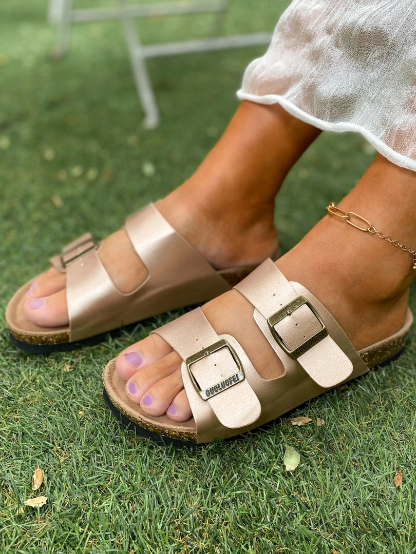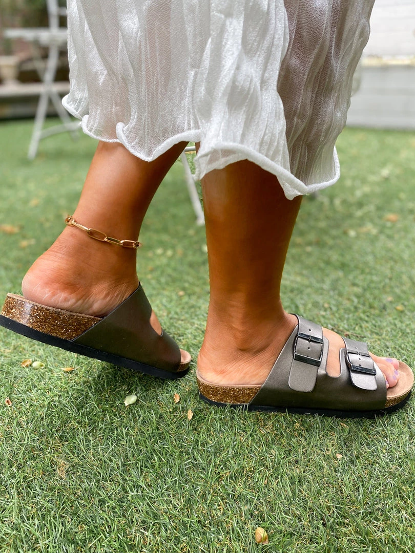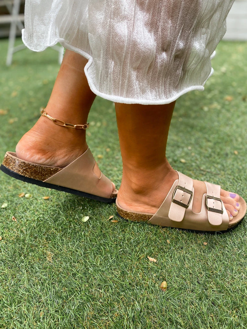 Made with an iconic double-buckle design, these slide-on sandals are a must for trips to the farmers’ market or shopping with your friends. The soft, durable matte featured fabric ensures years of wear.