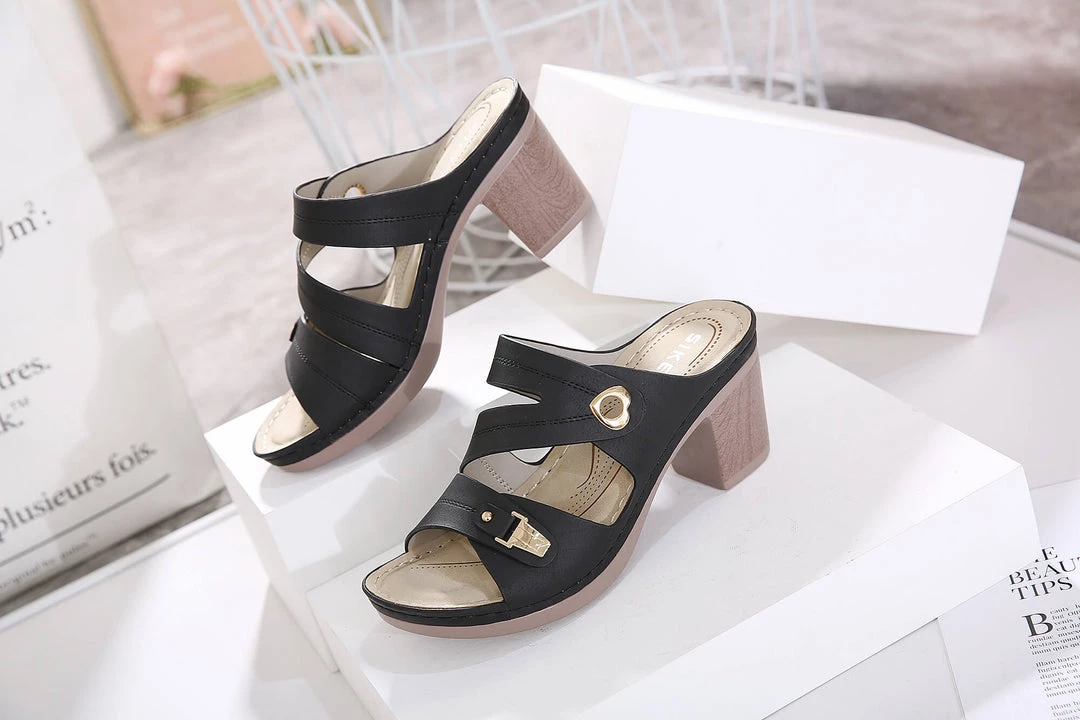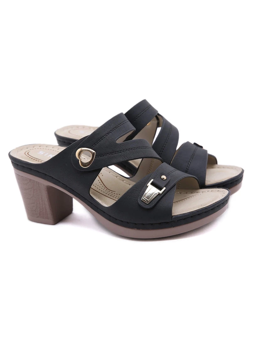 Put your fashionable foot forward in these block-heel sandals boasting metal buckles for statement-making stepping style.