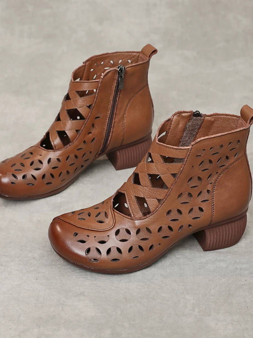 Hit the streets in comfort wearing this cut-out leather ankle boot with a lightly cushioned sole for all day style.