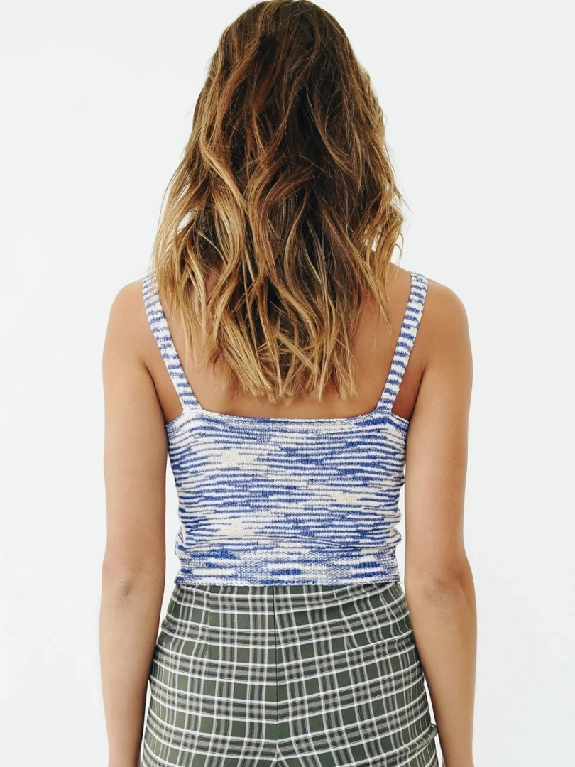 Our Leo Knit Tank comes in a blue and white fade colour. Give some lift to your everyday look with this sleeveless knit top that features a low neckline and a fade pattern play on the bodice. It is a foundational piece that can be worn on its own or as layer to a sleeved tank! Pair this top with our latest on trend sandal collection to complete the look!