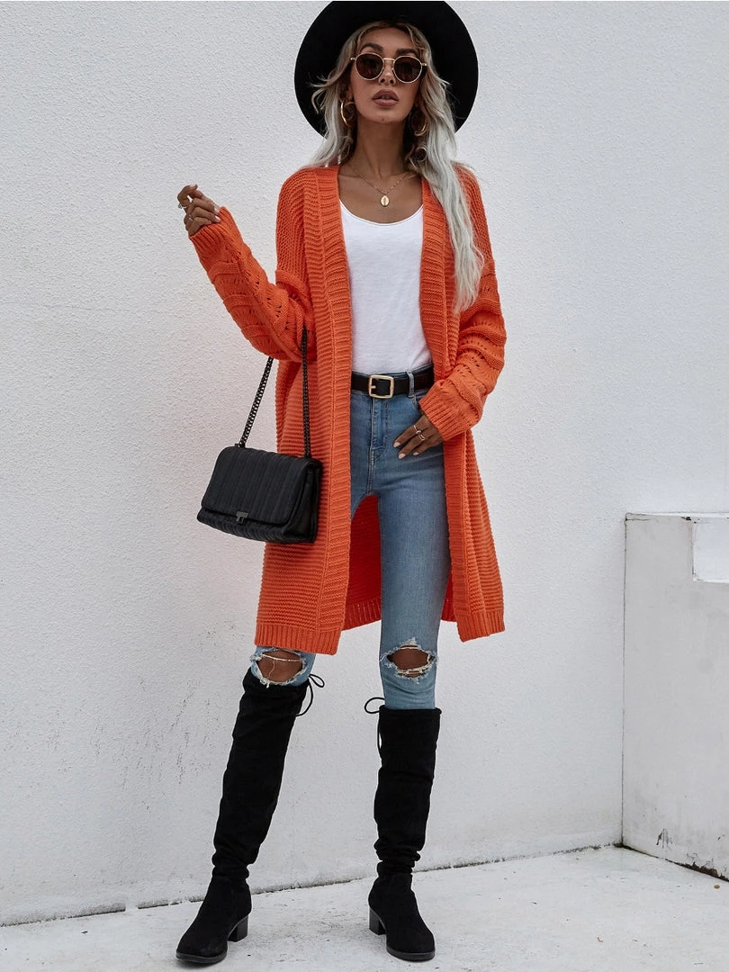 Add a cozy layer to your cool-weather ensemble with this long knit cardigan that pairs easily with our favorite blouses or dresses.