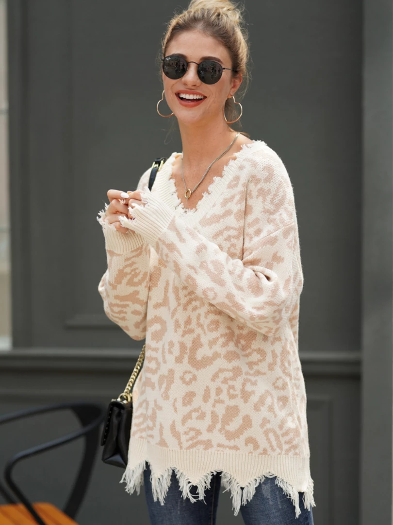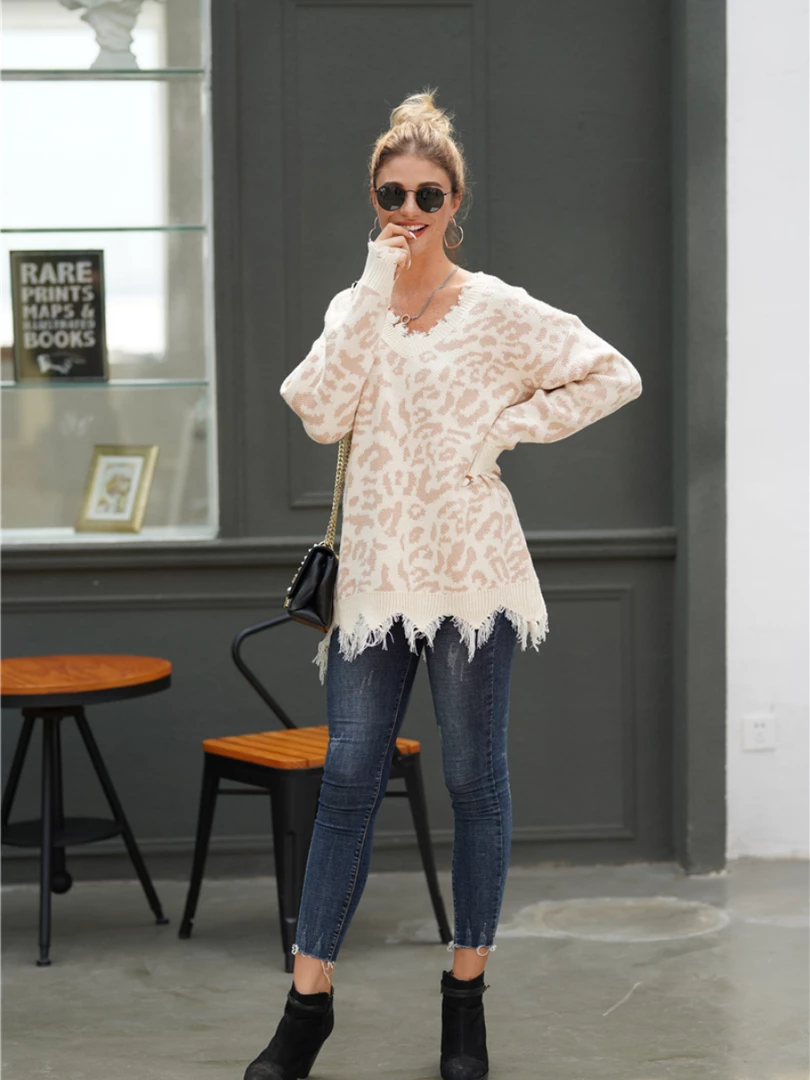 Rock a vintage-inspired look on a cool day in this ripped-knit sweater offering soft and cozy comfort!