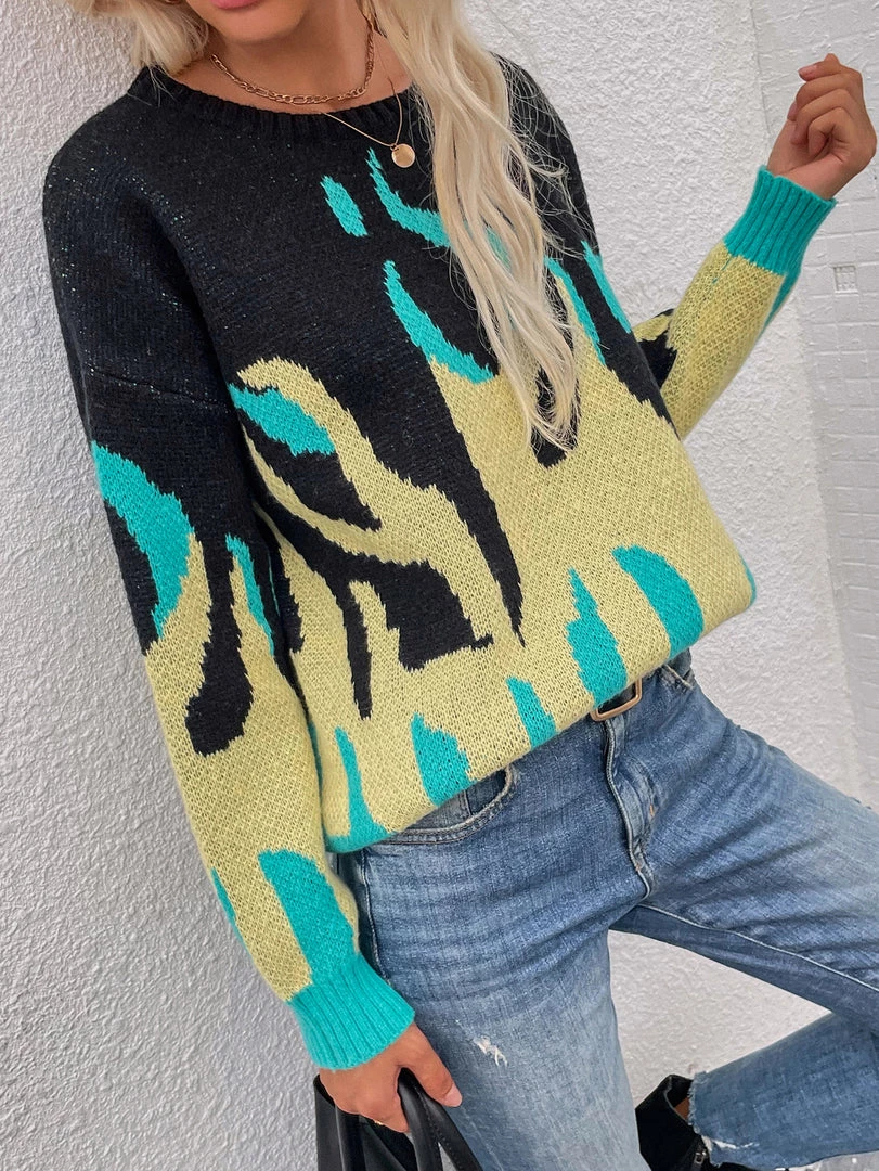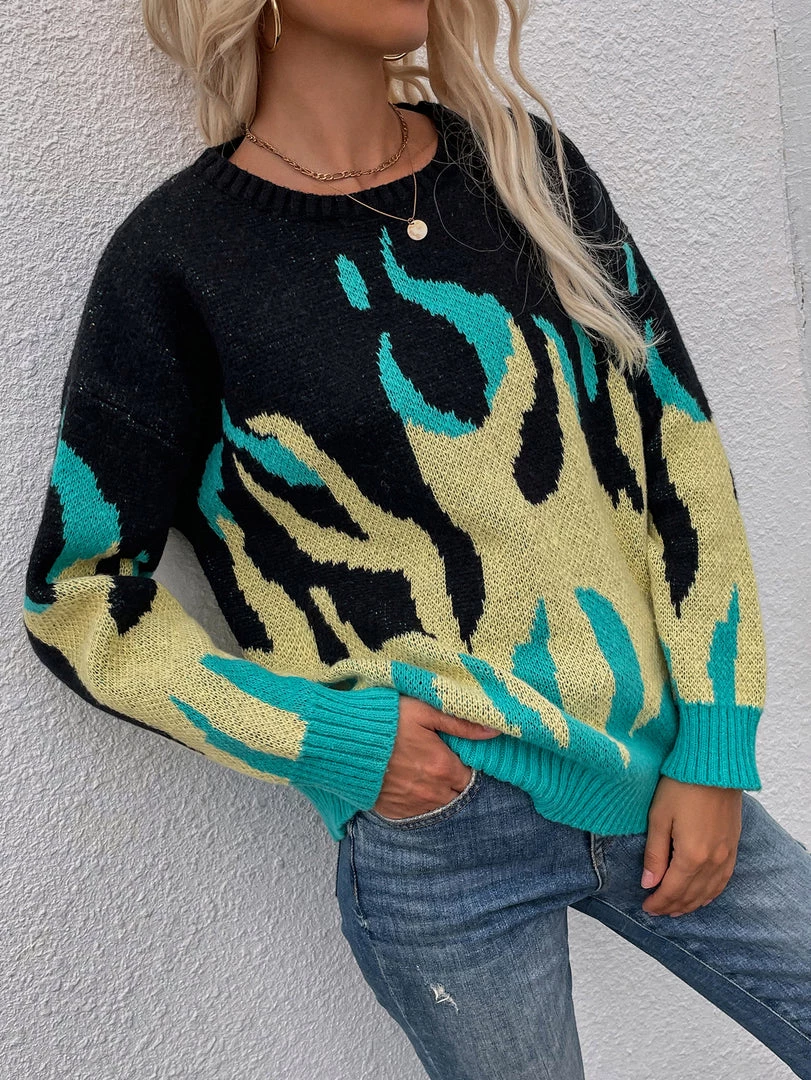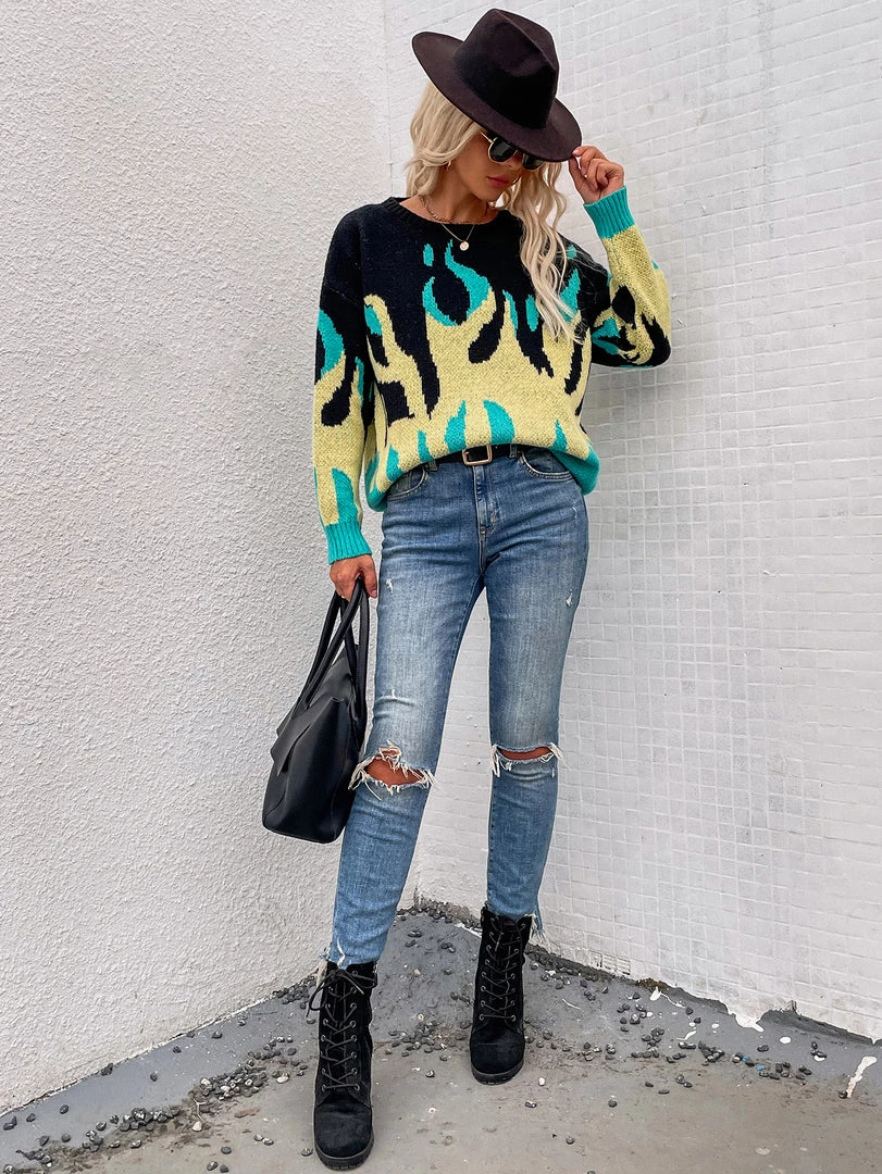 Give yourself a gift this holiday season with this cozy sweater featuring a flame print and soft knit material.