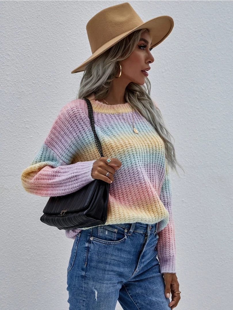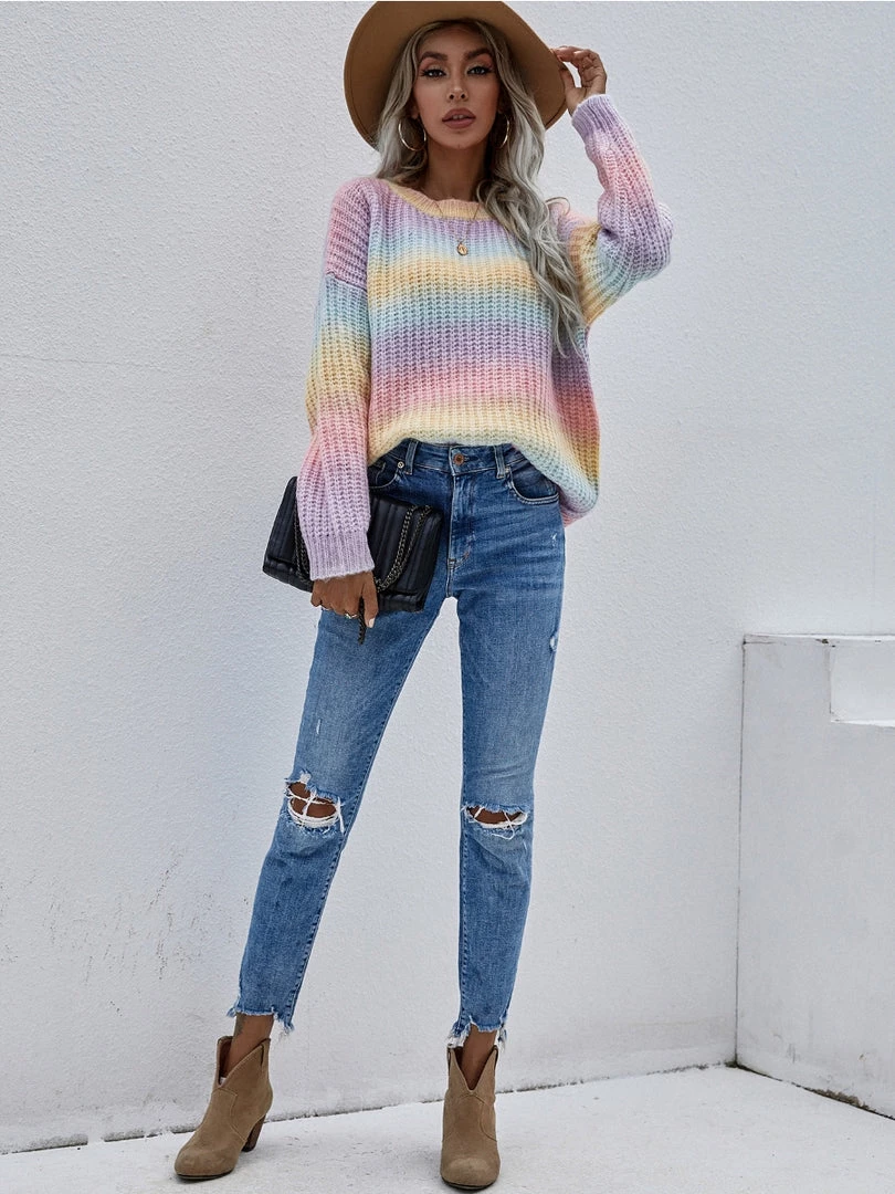 Embrace your free-spirited approach to fashion with this long-sleeve bat-sleeve sweater featuring an on-trend tie-dye design and comfortable loose fitting.