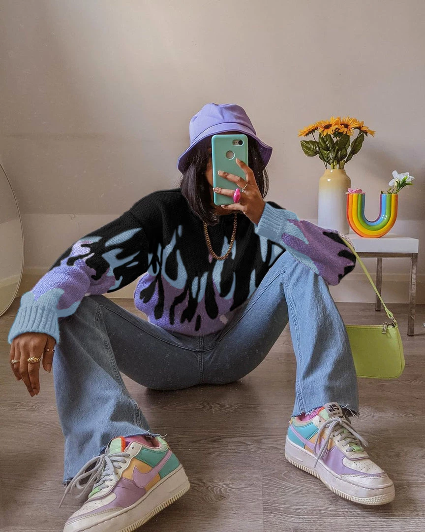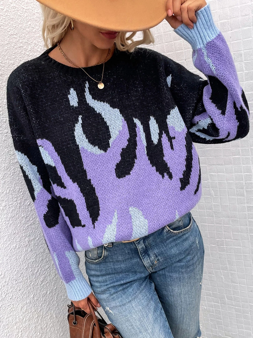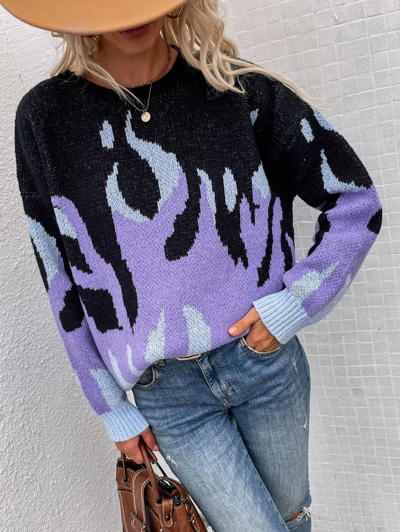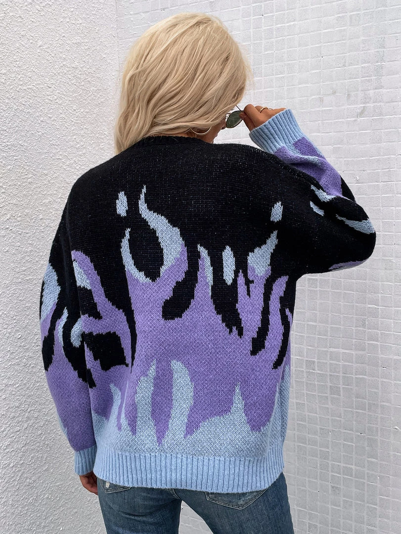 Give yourself a gift this holiday season with this cozy sweater featuring a flame print and soft knit material.