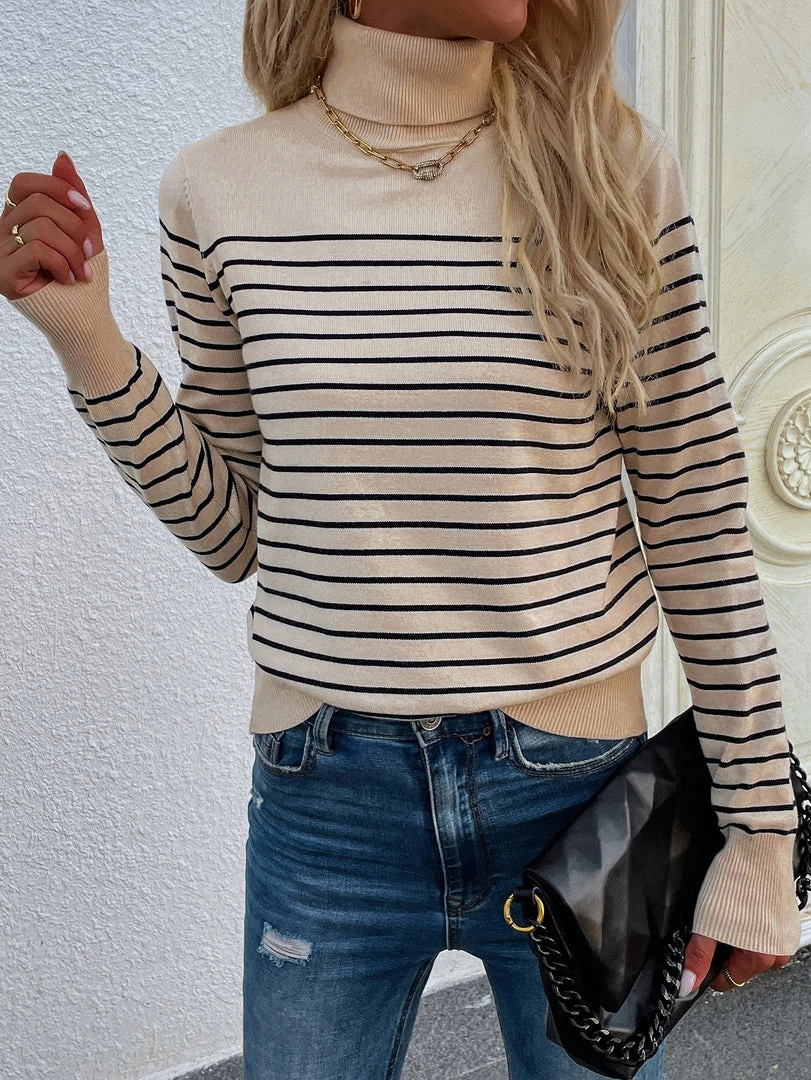 MY Smaibulun | Beige Stripe Turtleneck Knit Top New In Clothing
