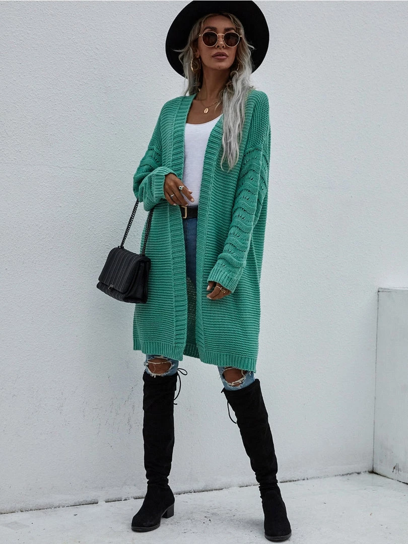 Add a cozy layer to your cool-weather ensemble with this long knit cardigan that pairs easily with our favorite blouses or dresses.