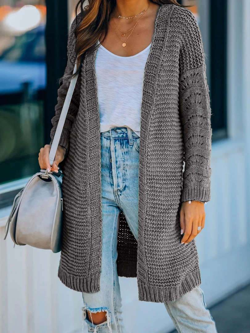 Add a cozy layer to your cool-weather ensemble with this long knit cardigan that pairs easily with your favorite blouses or dresses.