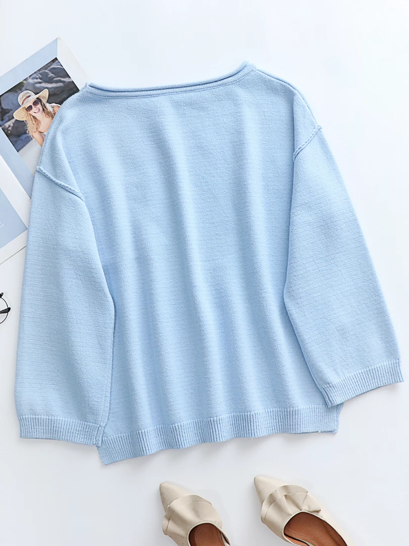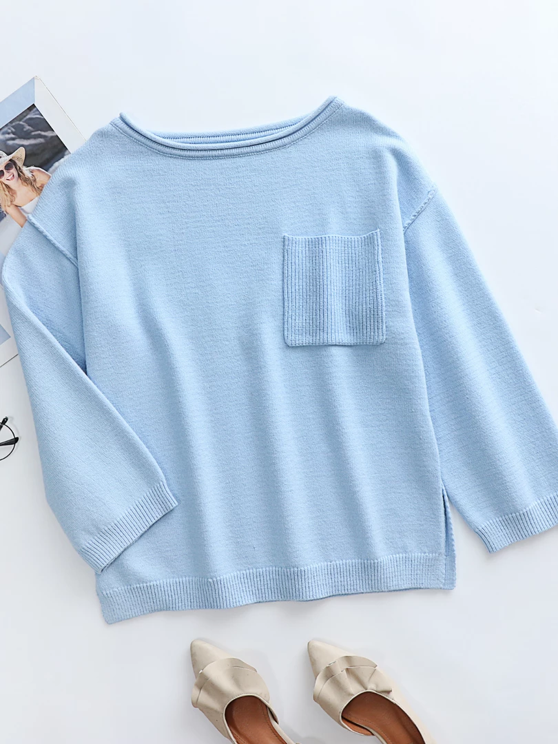 Our Doretta Knit comes in soft tone base. It features a rip neckline, long relaxed sleeves, and a large pocket in front of the garment. This cute knit is perfect for layering during the cold winter months!