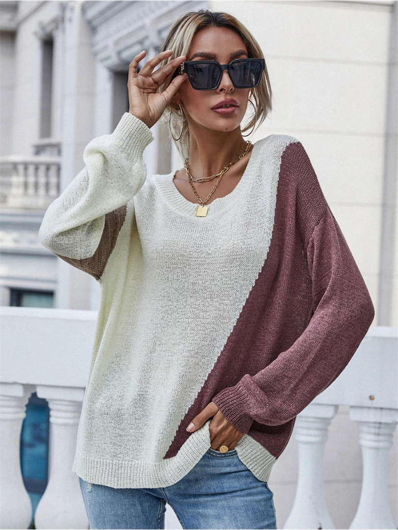 Our Grania Knit comes in a beige & cream tone. This oversized knit features a round neck and long relaxed sleeves for a comfortable fit. It’s an elegant layer to keep you warm and classy during the transeason months ahead! Pair it with a cute high heel from our range and sharp heeled boot as a stylish Spring look.