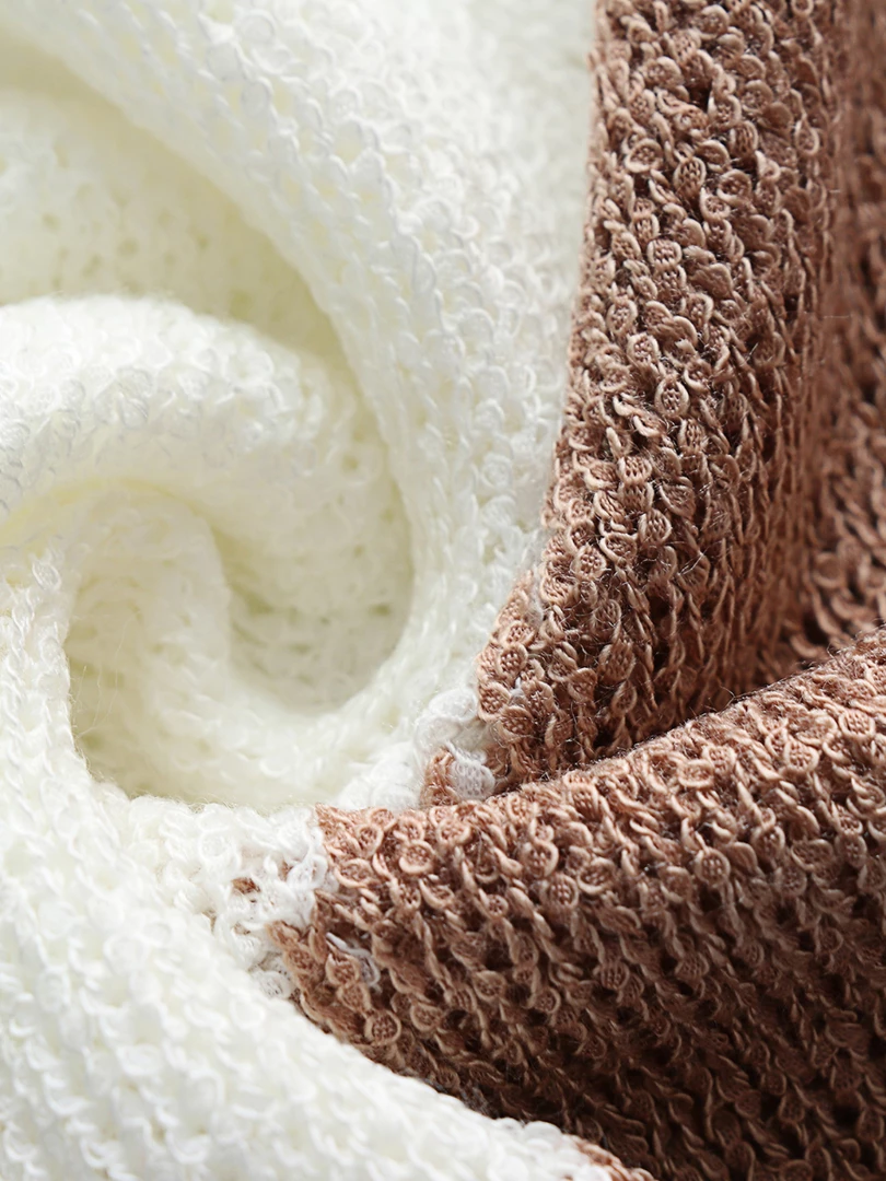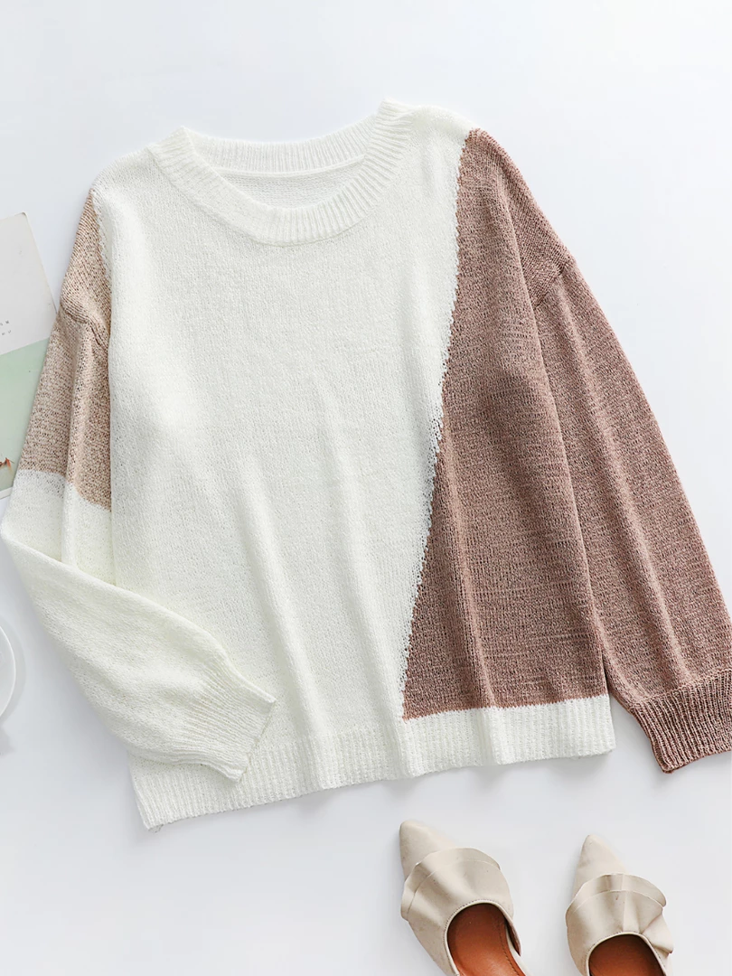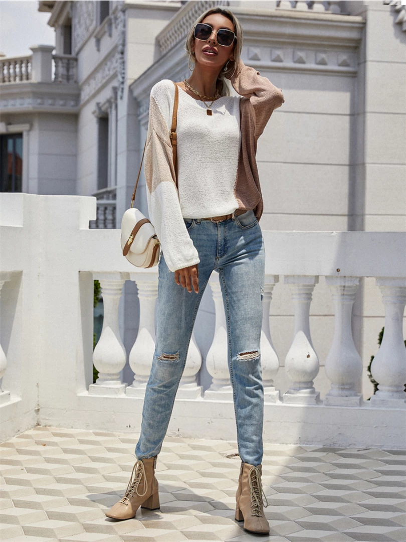 Our Grania Knit comes in a cream & beige tone. This oversized knit features a round neck and long relaxed sleeves for a comfortable fit. It’s an elegant layer to keep you warm and classy during the transeason months ahead! Pair it with a cute high heel from our range and sharp heeled boot as a stylish Spring look.