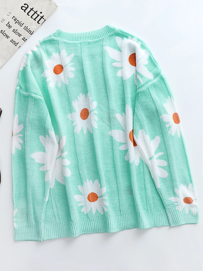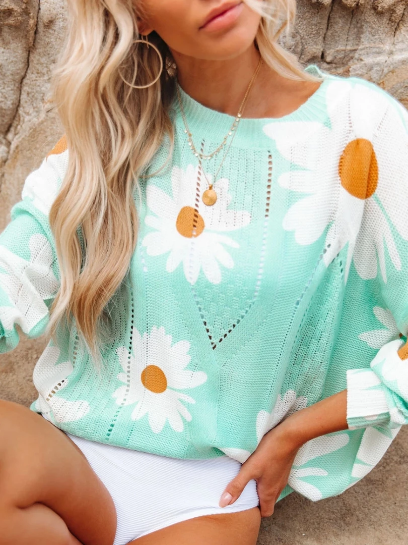 - Feature: Perforated detail. Relaxed fit. Large sunflower print.