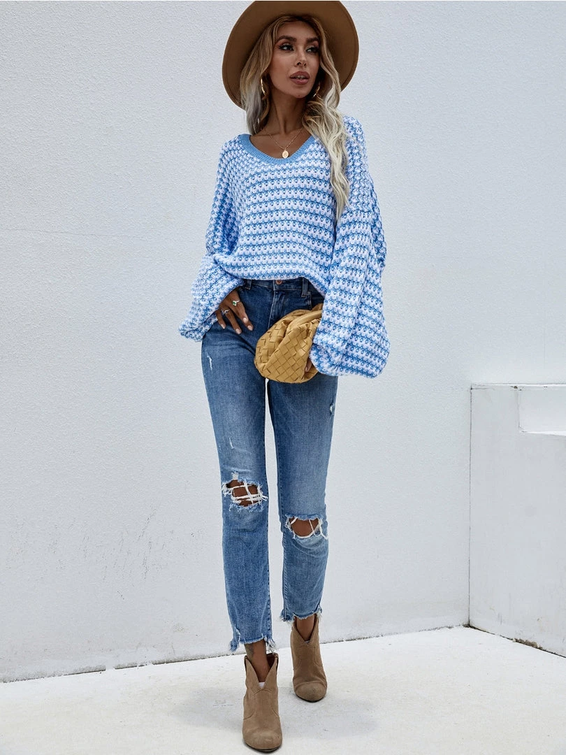 MY Smaibulun | Puff Sleeve V-Neck Sweater – Blue