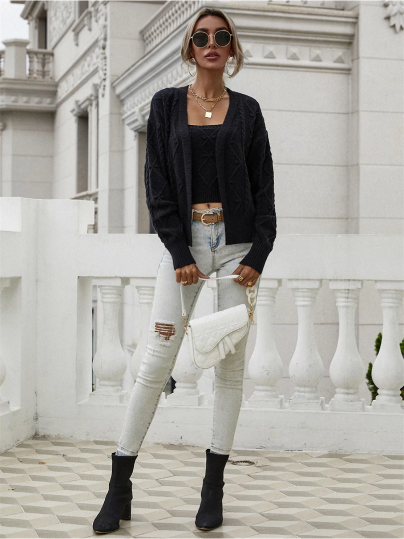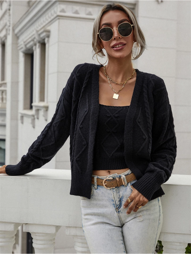 - Feature: Includes one knit cardigan, one sleeveless crop top. (two pieces total)