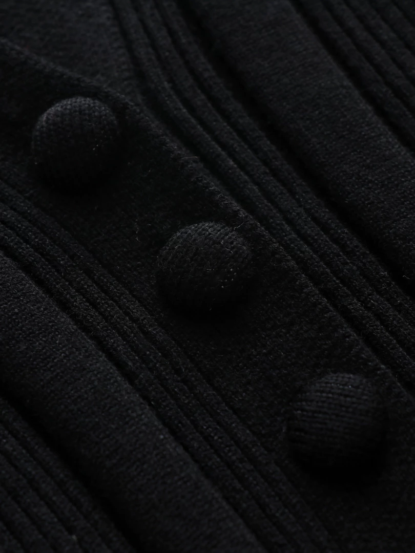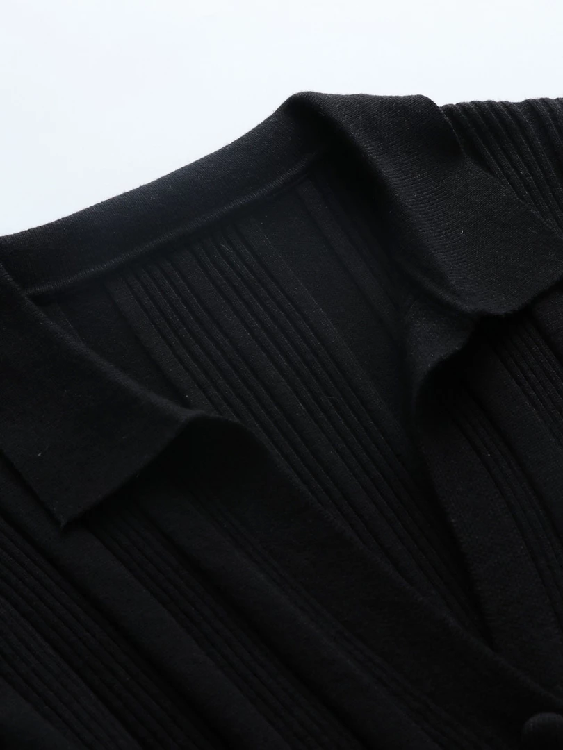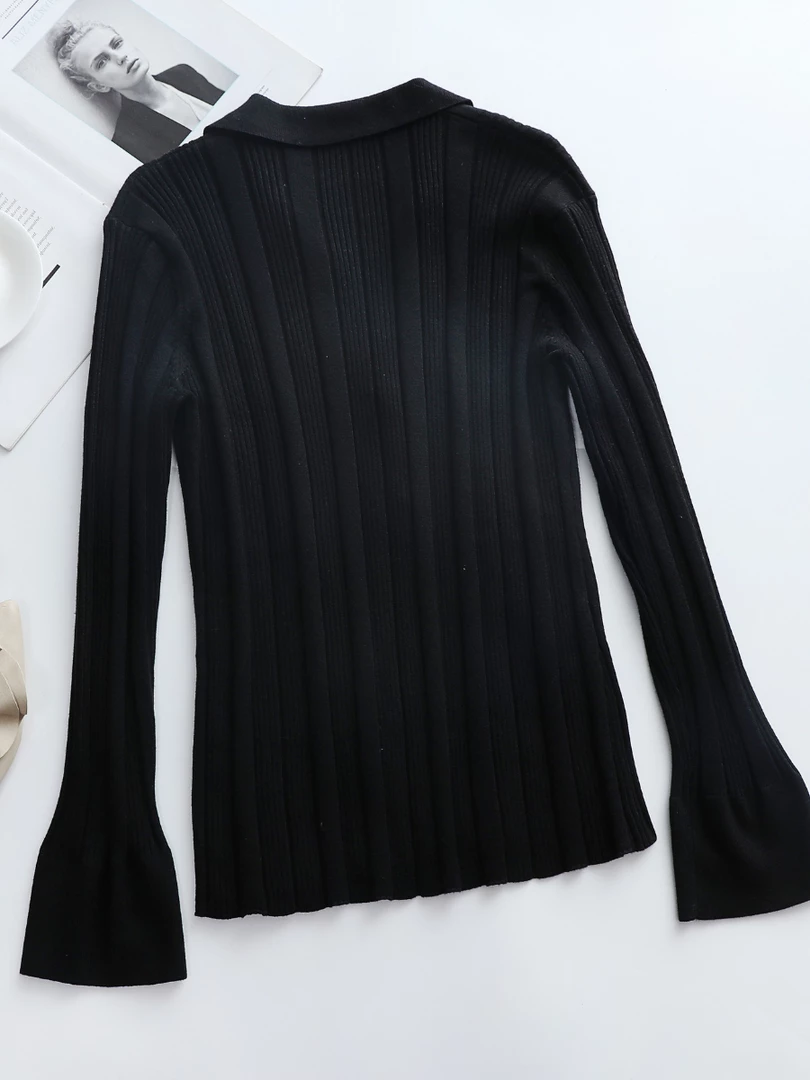 Our Tamia knit jacket comes in a solid black tone. This cropped knit features a low V-open front and long relaxed bell cuff for a elegant and comfortable fit. It’s an elegant layer to keep you showing off this coming spring ahead!