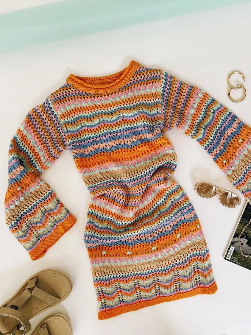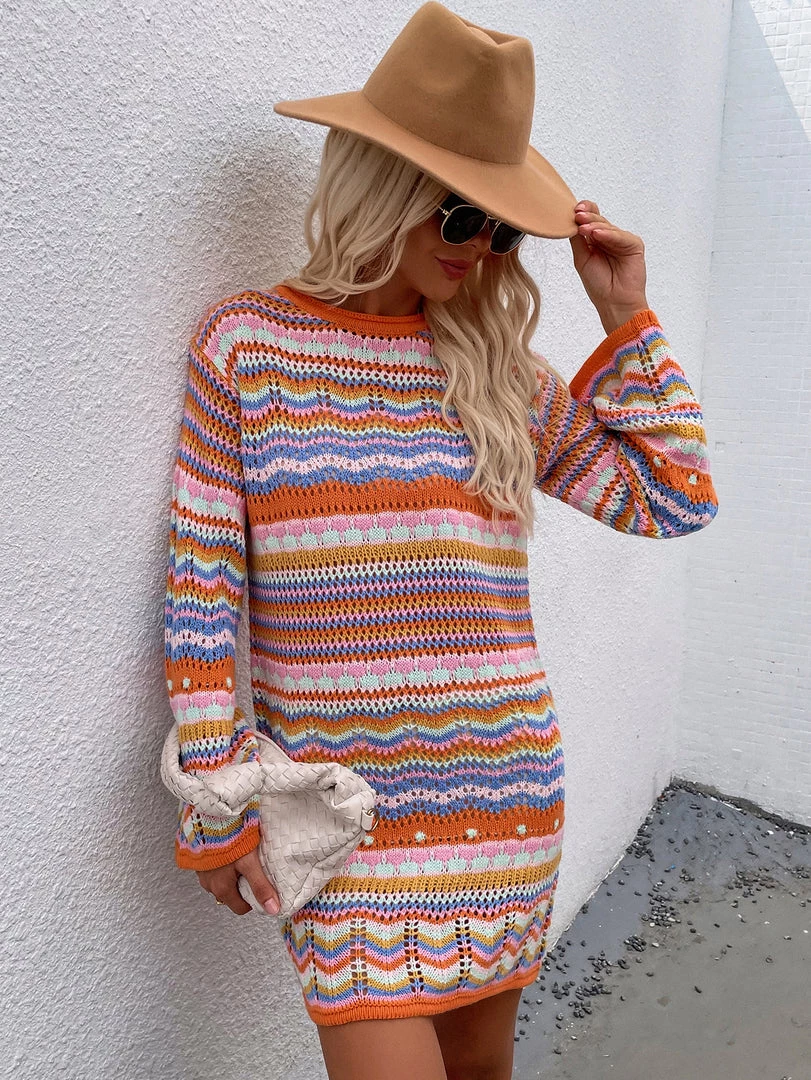 This chunky knit dress features a crew neckline, ribbed cuffs and hem.This classic silhouette and tone is perfect for the cooler weather ahead during holiday seasons.