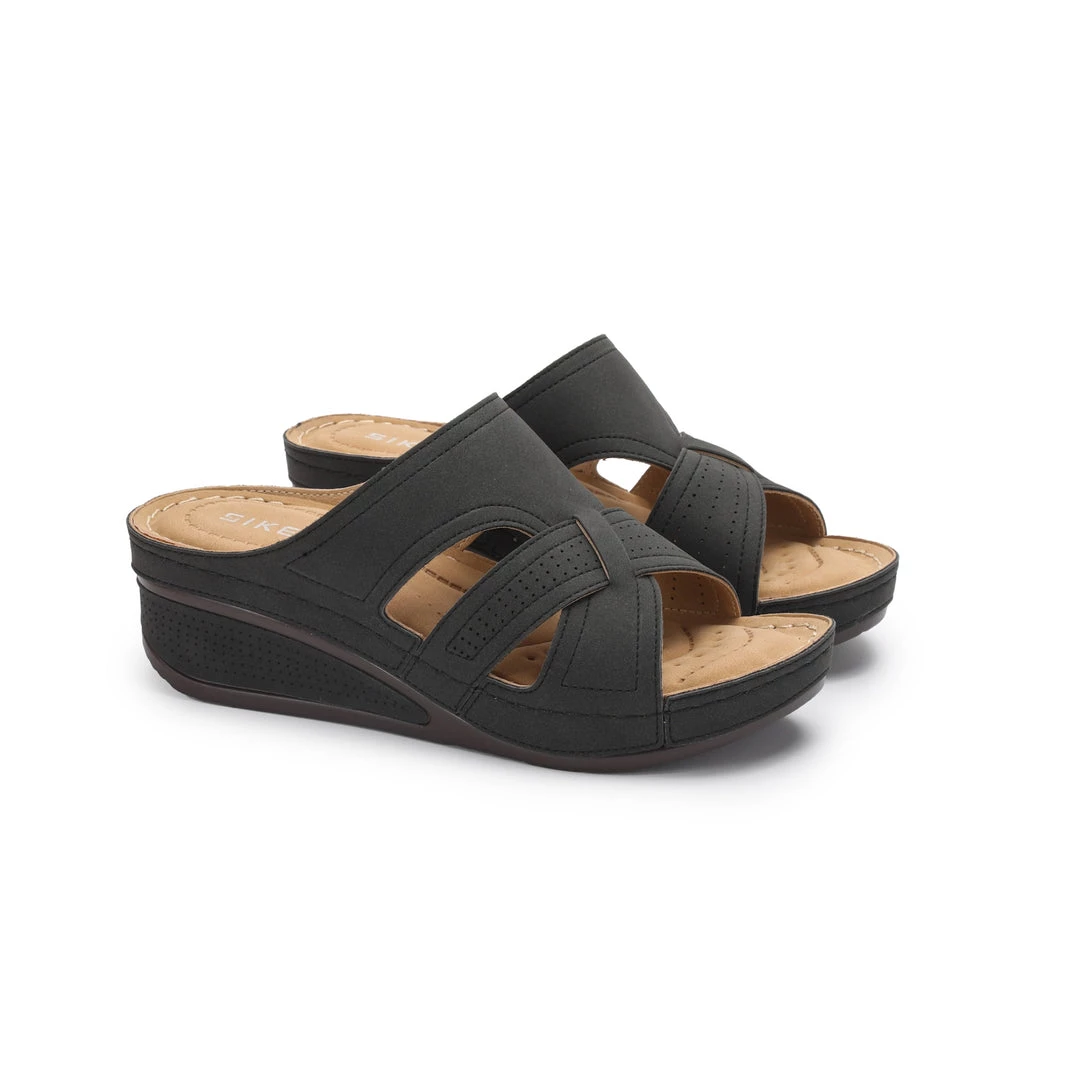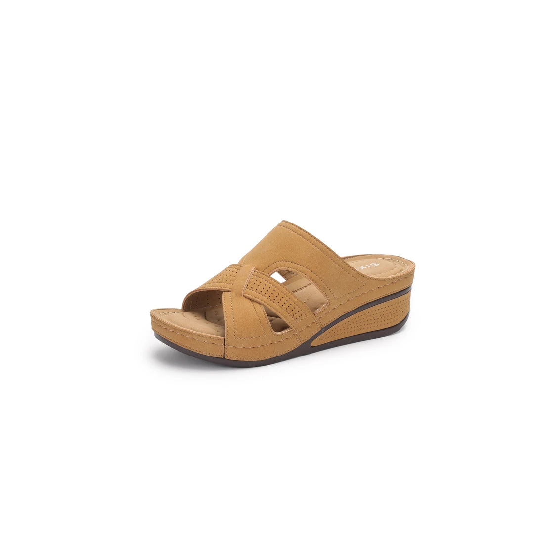 Update your warm-weather wardrobe with these stylish perforated wedge sandals boasting chic geometric cutouts and crisscross straps.